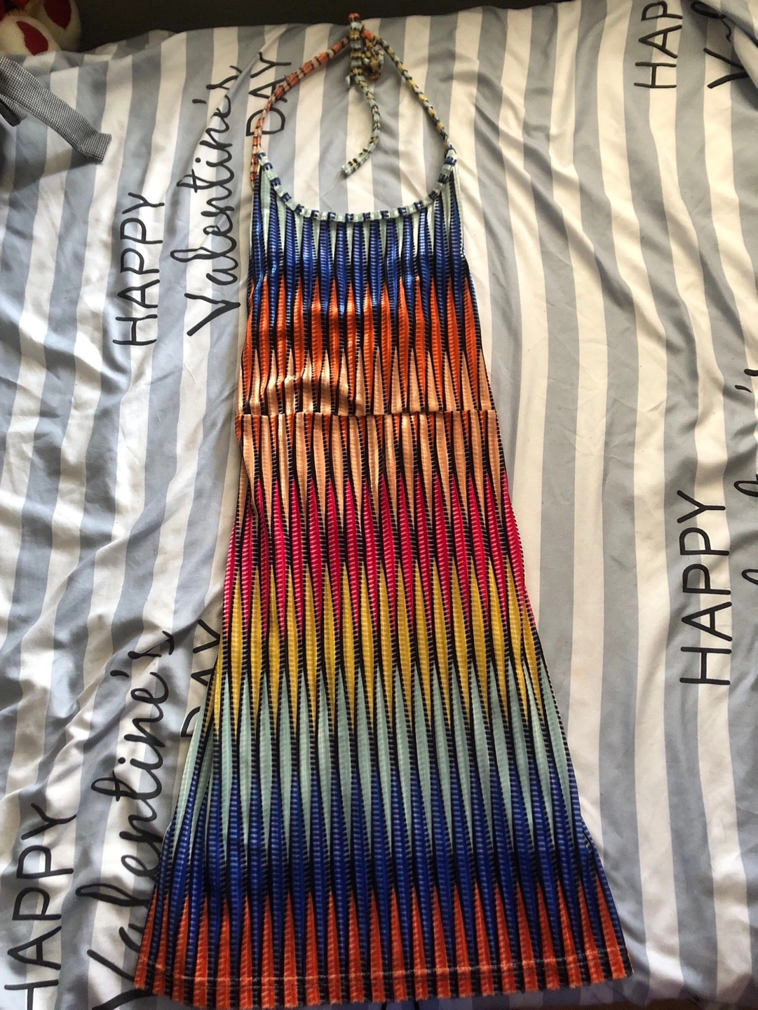Worn once Vacation colourful dress Open back Stretchy fabric