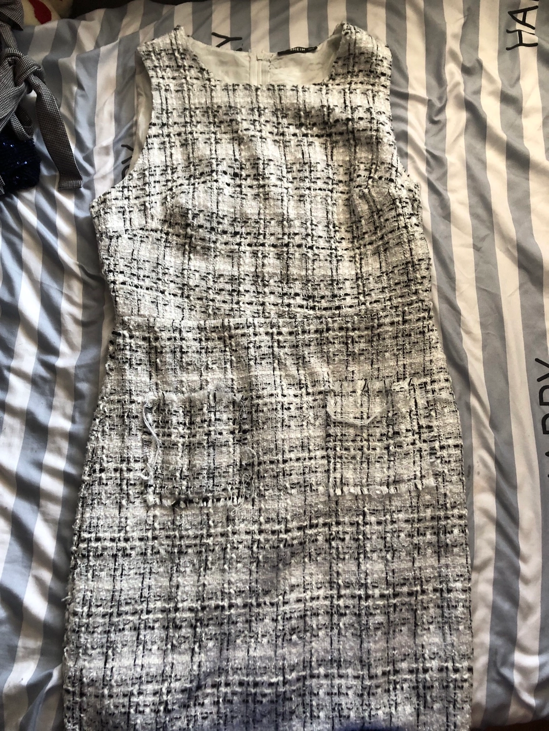 Distressed design Zip back Above knee length Some stretch fabric