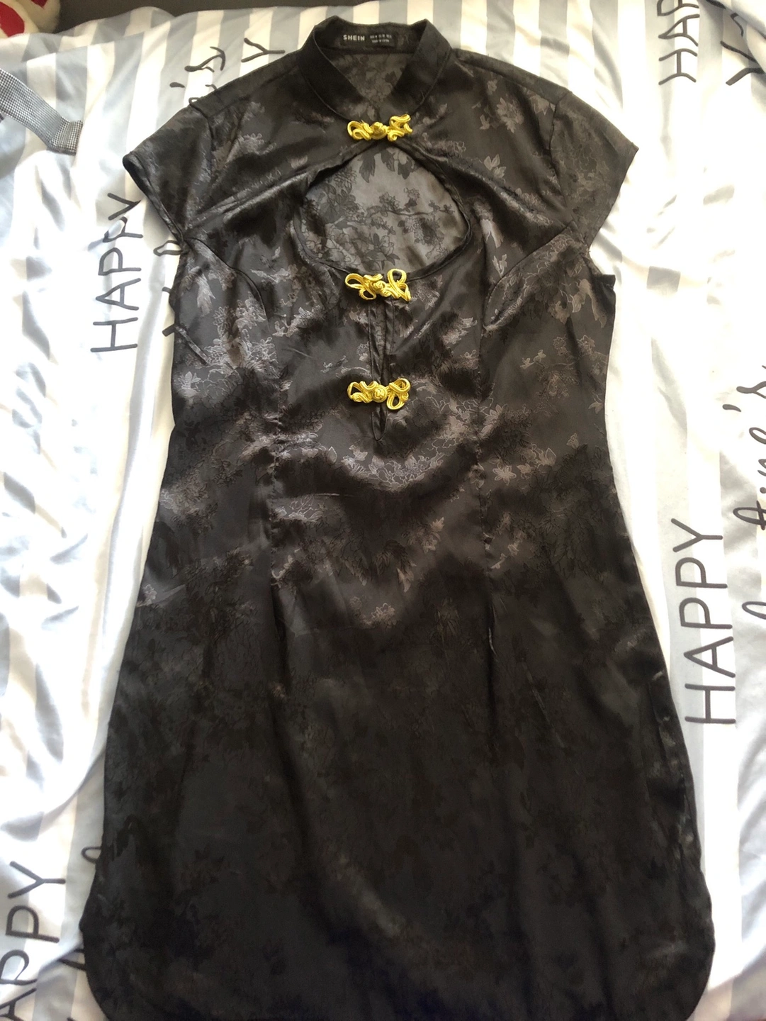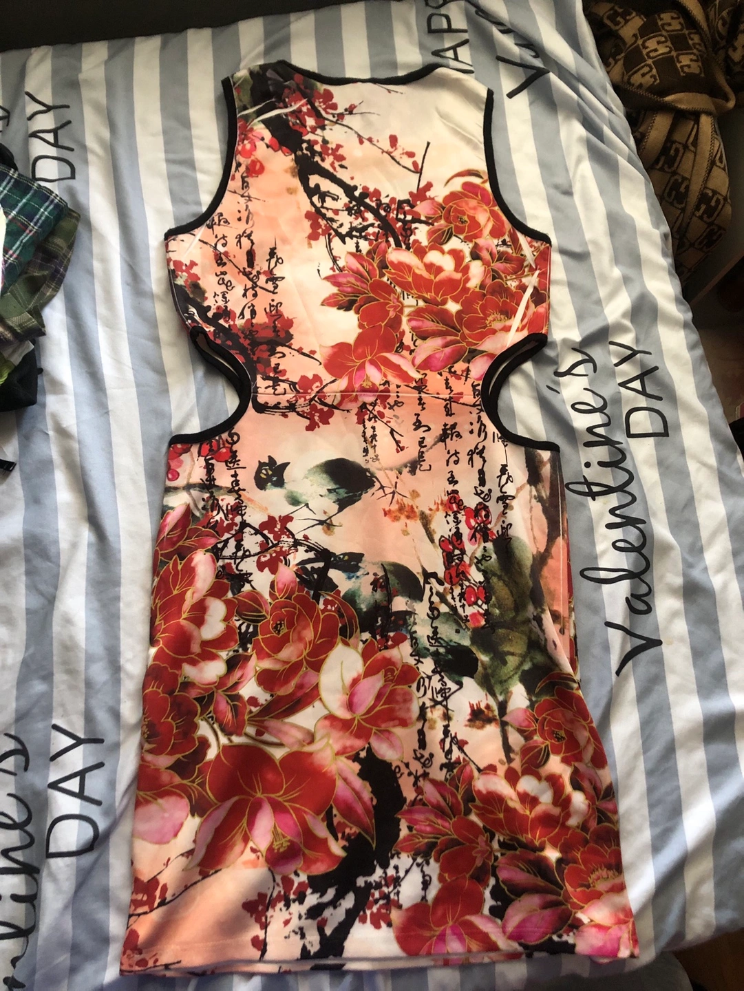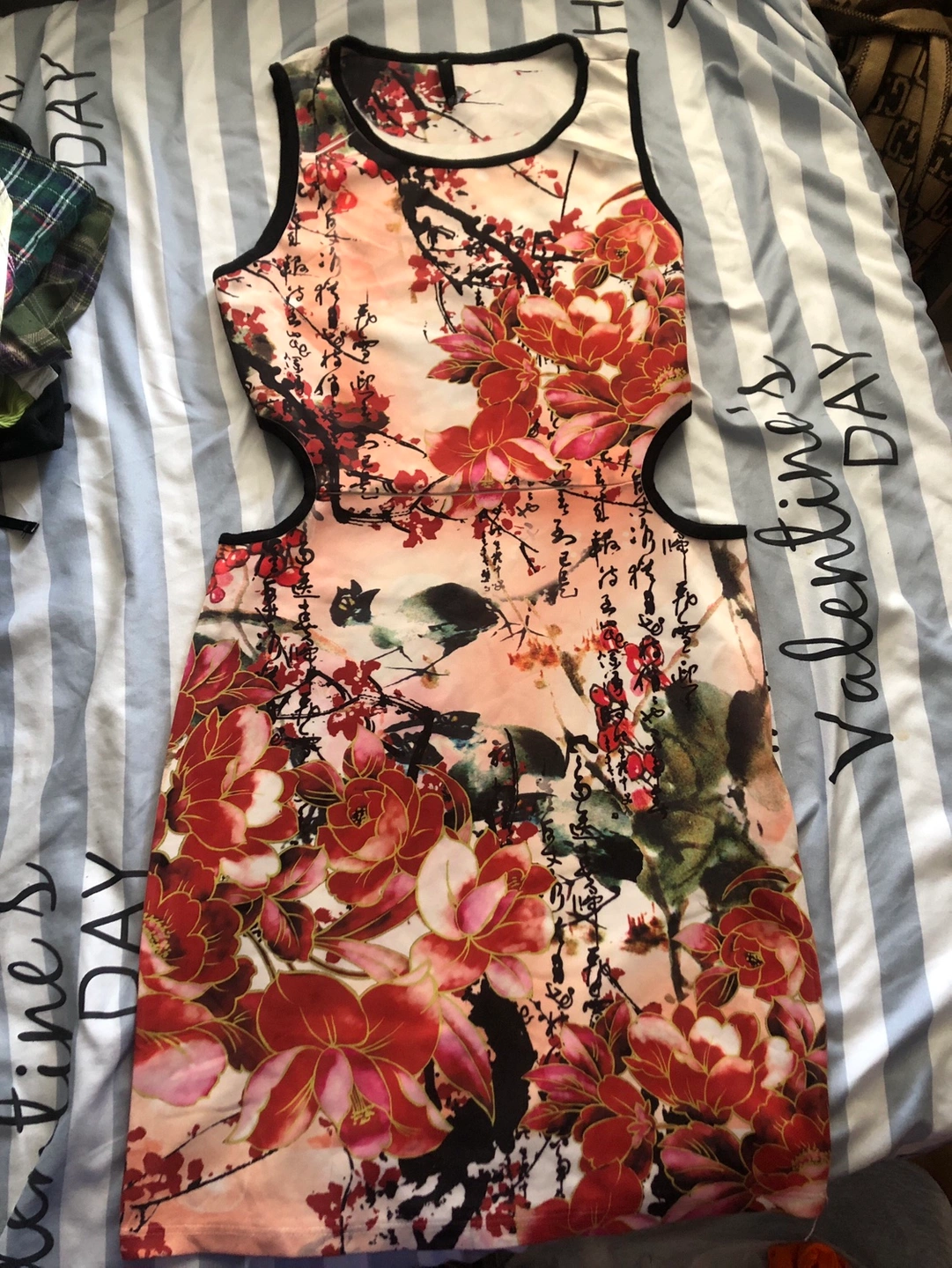 Both together for $5 Open cut on sides of red dress Stretchy material Black colour Gold hooks M size Some stretch type material Short dress