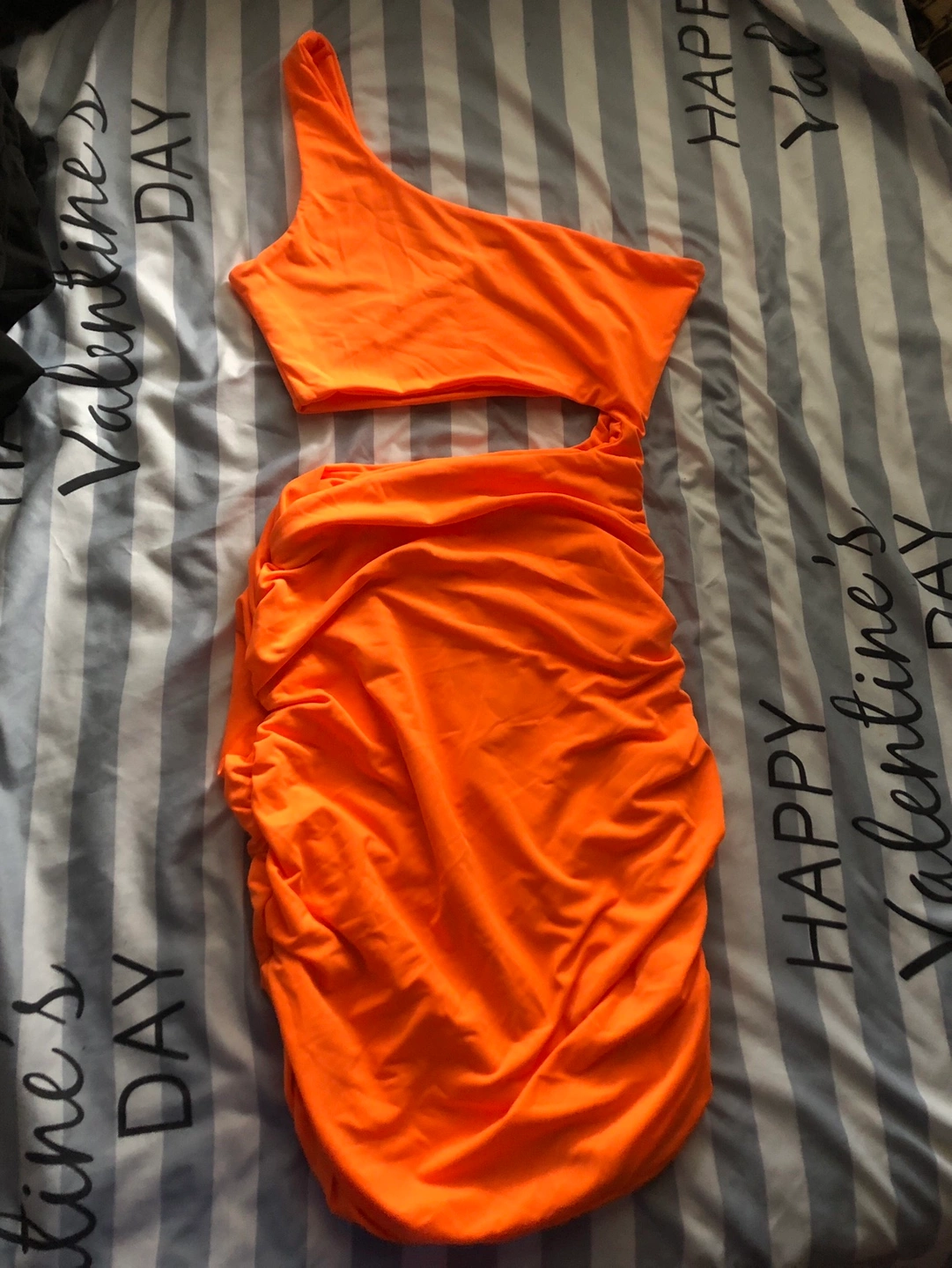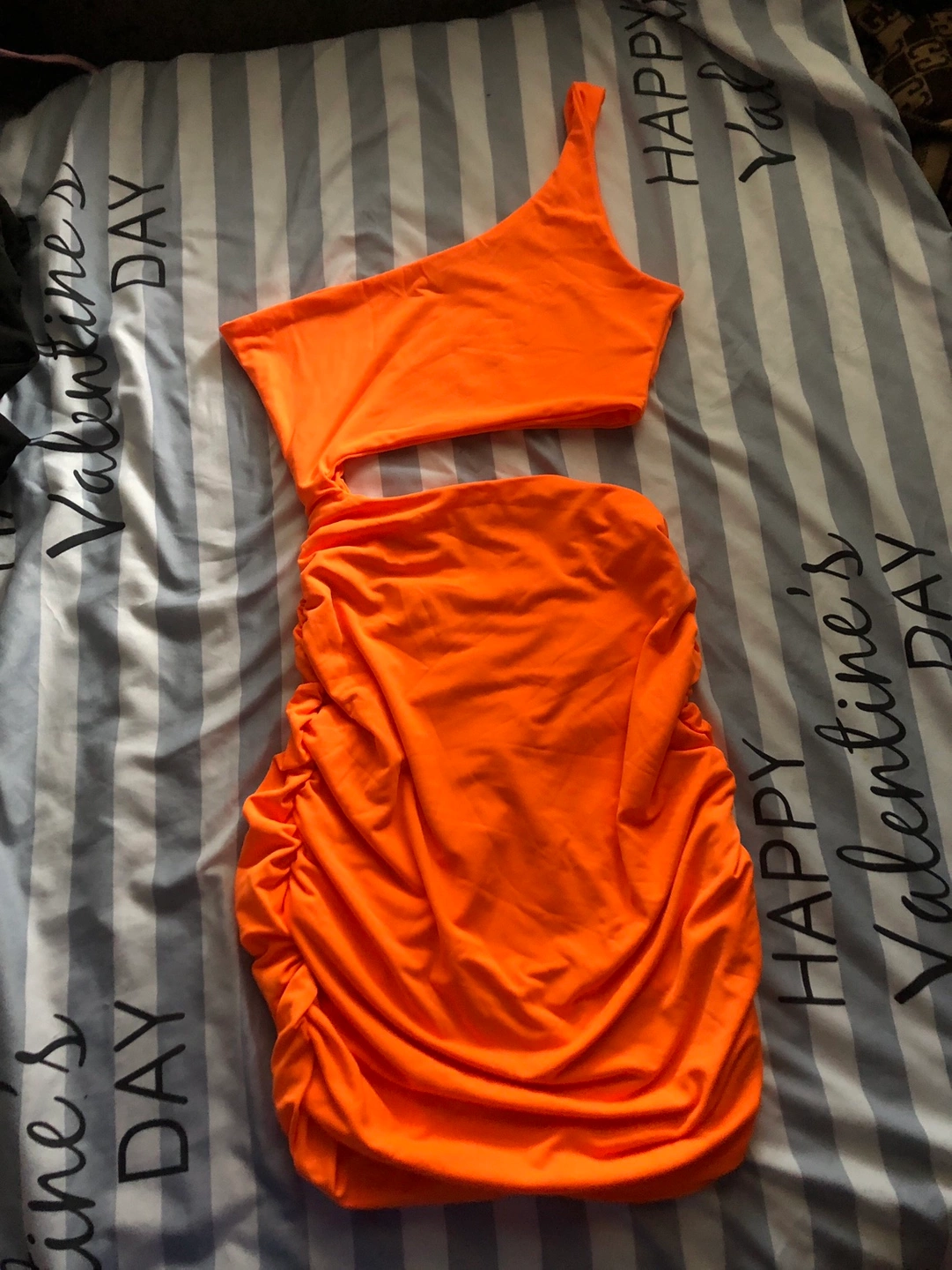 New no tag Orange dress short Side ruching
