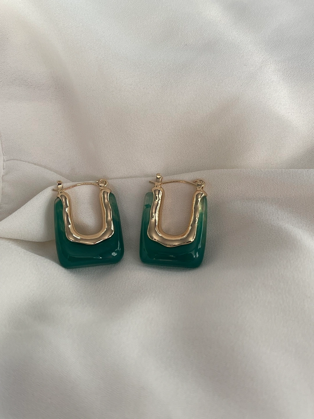Brand new resin earrings Color: green Material: resin and zinc alloy Dimensions: 3.1 cm x 2.2 cm ( Height x width) Pick-up: 1145 Logan avenue, Toronto