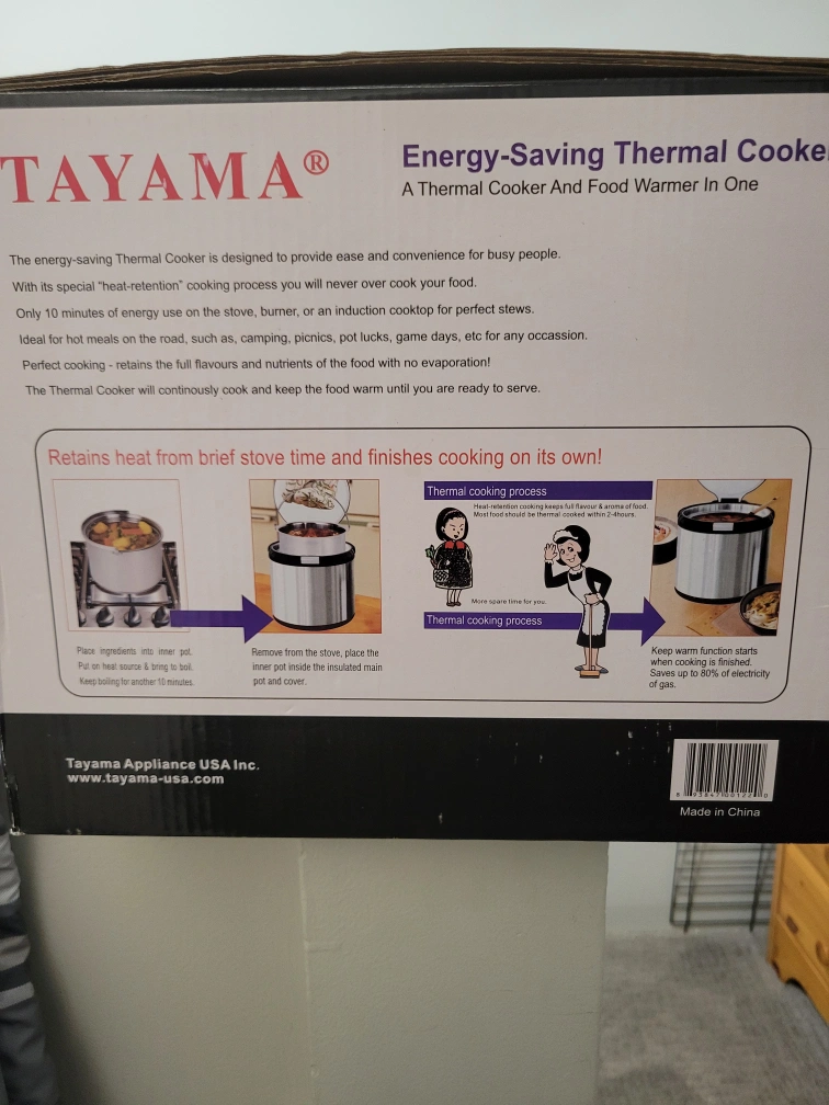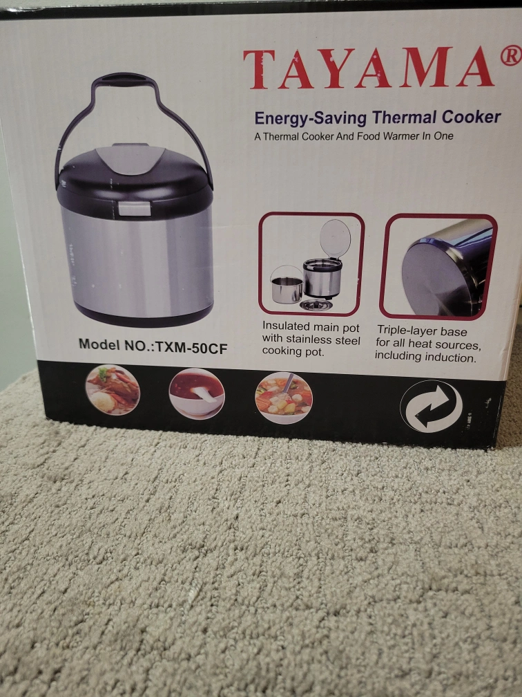 Tayama TXM 50CF Energy-Saving Thermal Cooker. New in the box. Capacity: 5.0 Litres. Economical, time saving and energy saving 80% of electricity or gas. Food stays warm even after 6 hours.