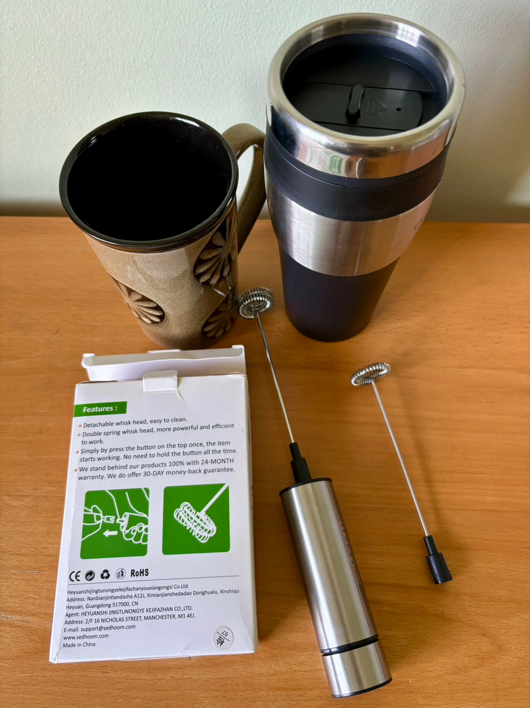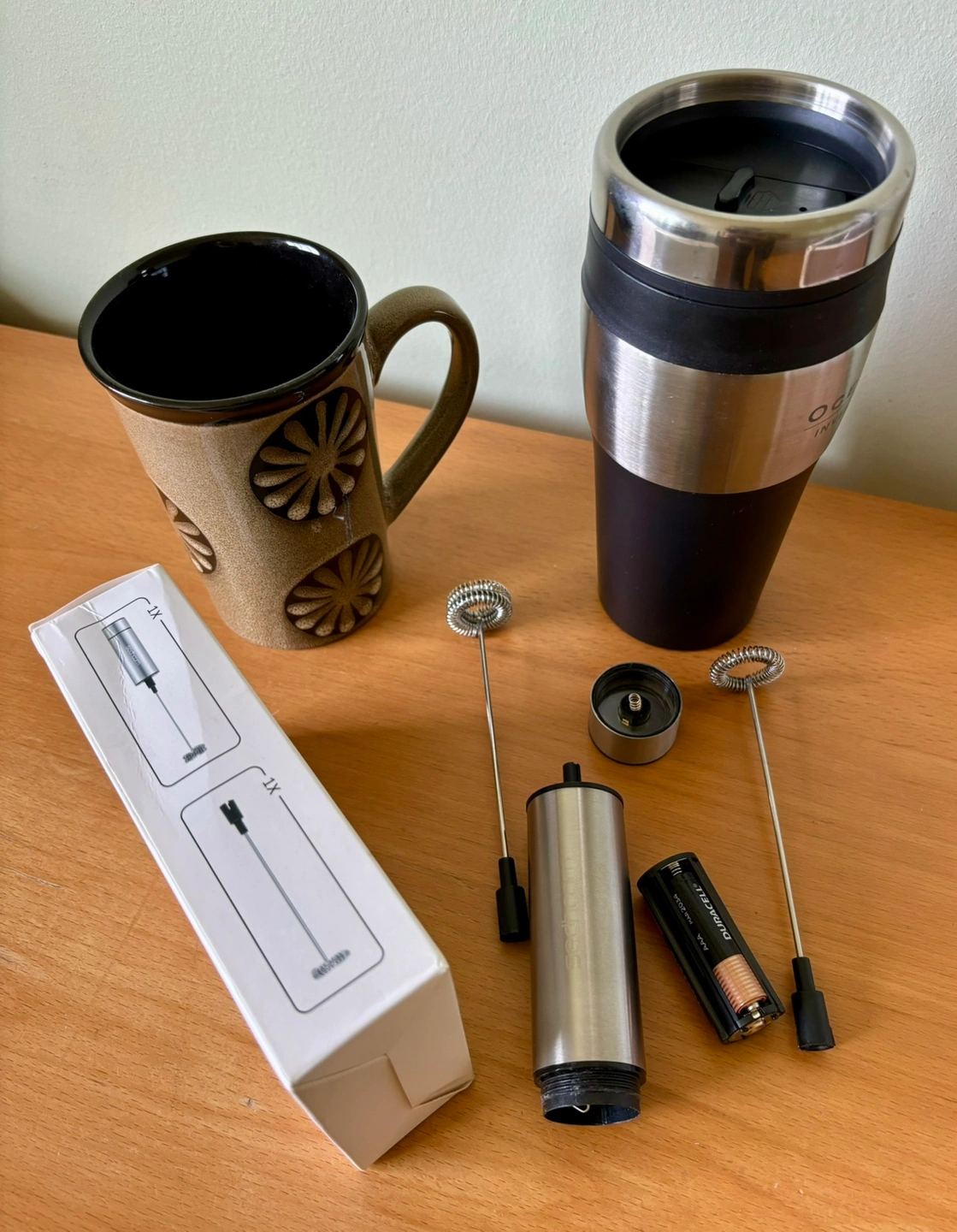 Price is for the milk frother set only. Or adding a NEW travel mug, a ceramic mug and 3 NEW Duracell AAA batteries for additional $6 ($15 in total). I only used the powerful milk frother once (bought on Amazon a few years ago about $18 +taxes without the batteries and mugs.) Click on my name for my other listings and pickup location.