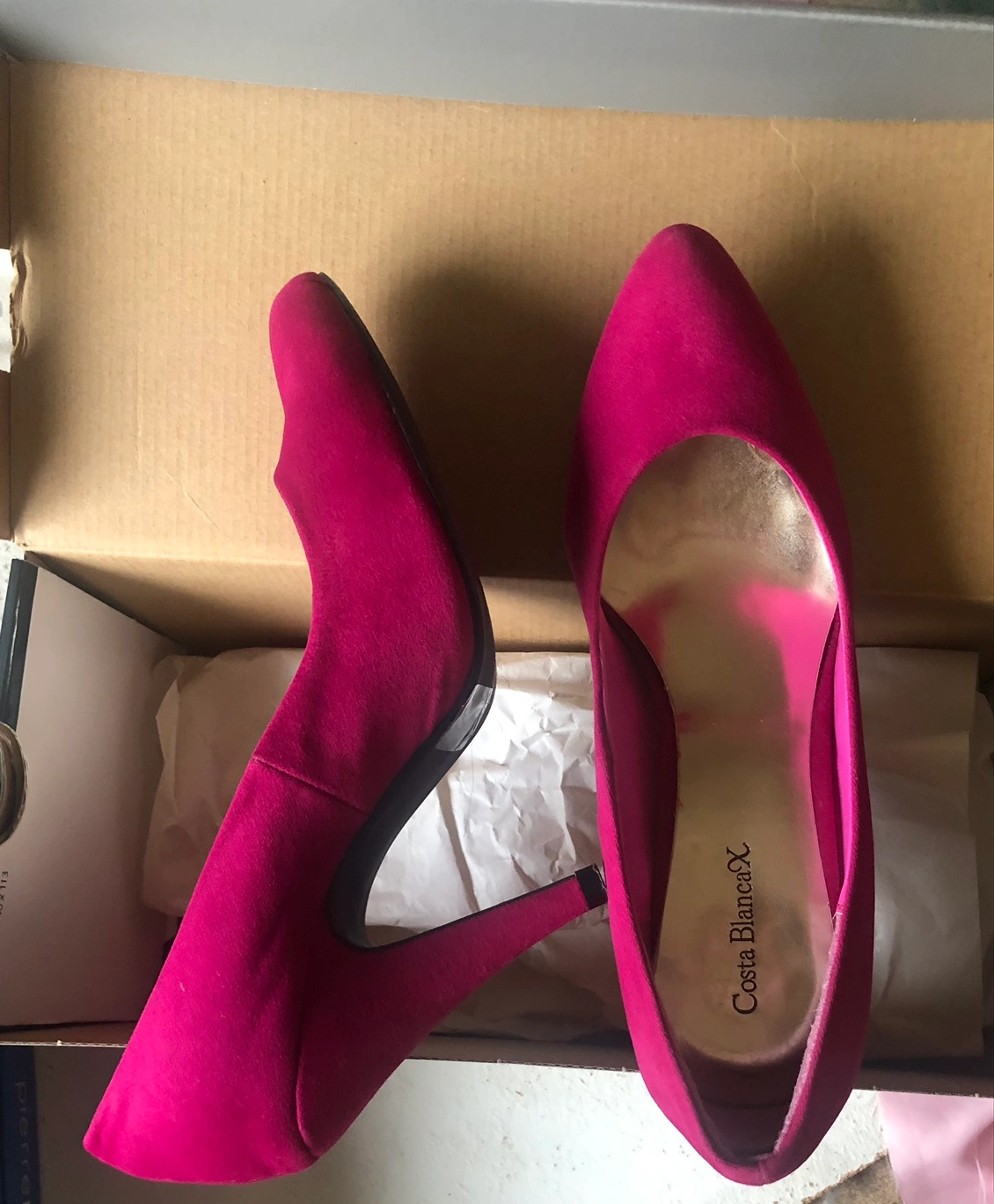 Costablanca 6 and half size very little use excellent condition like new shocking pink clr 3 inch pencil herl