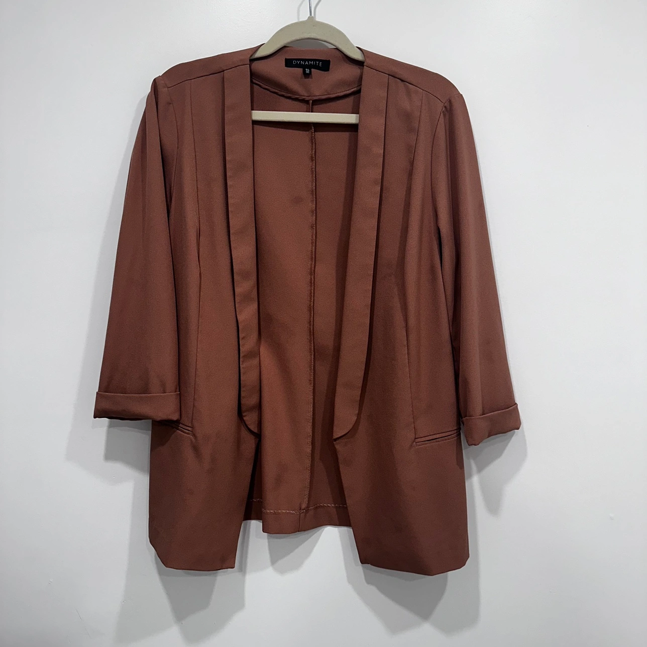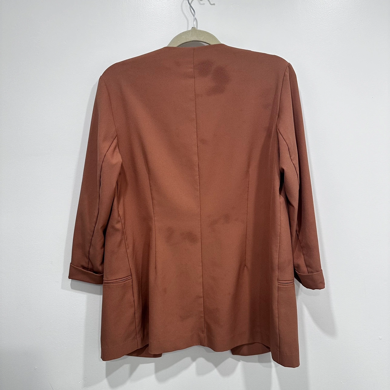 Preowned In good condition, minus the oil blotches at the back (seen in photo) Functional front pockets (has not been used; stitching remains intact) Cuffed sleeves No front closure Length 28” Pit to pit 20” Sleeve 19”