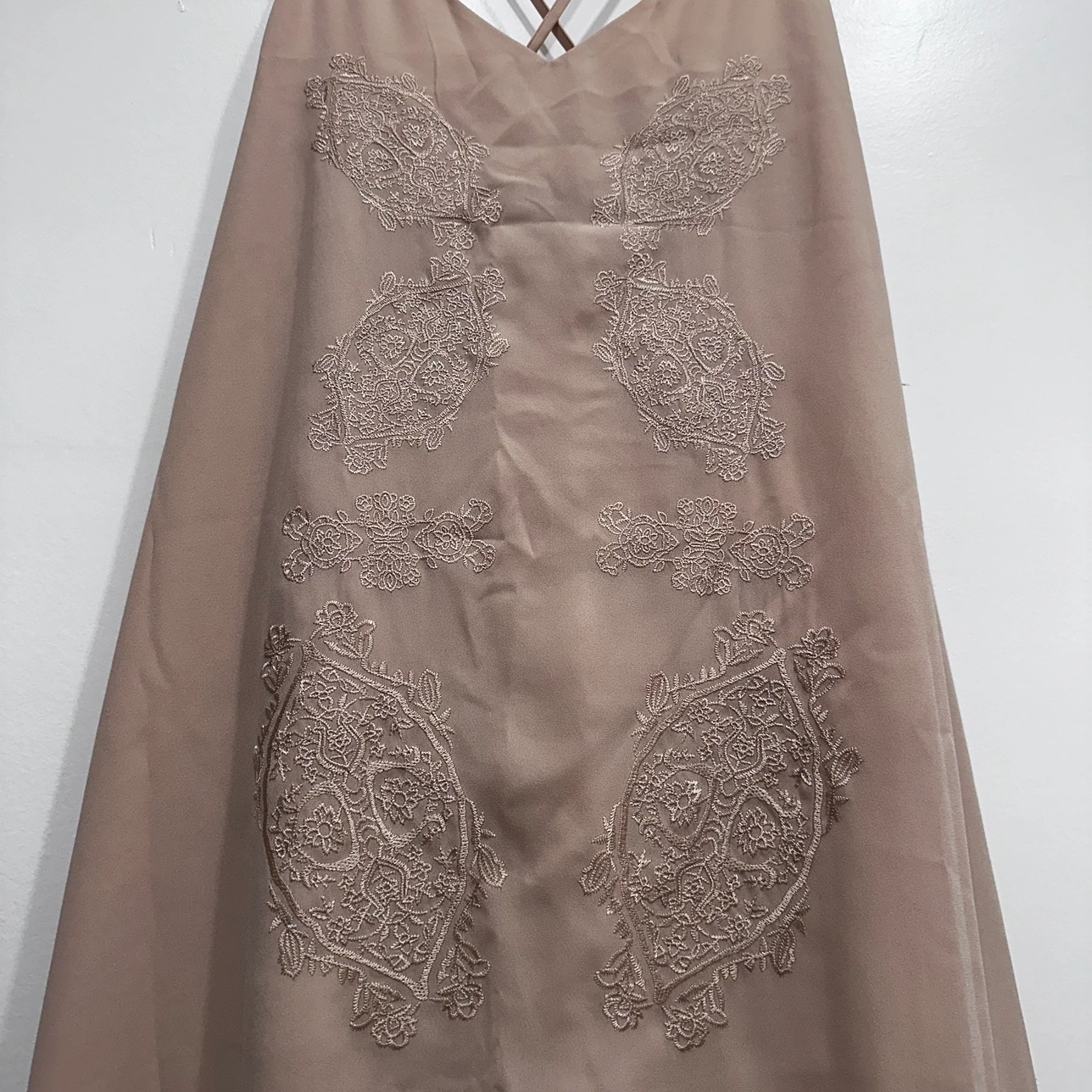 Preowned In good condition, barely worn Length 37” with strap; w/o straps pit down 23.5” Pit to pit 20.5”