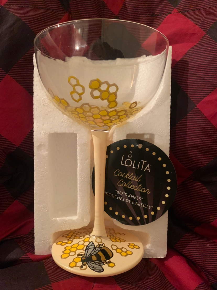 HAND PAINTED NEW “Bees Knees” 9 oz./266 ml suitable for 🎁 encased in styrofoam and cute box -for the bar or 🐝-delicate, light and comfortable to hold-very unique piece-mutually agreeable meet up