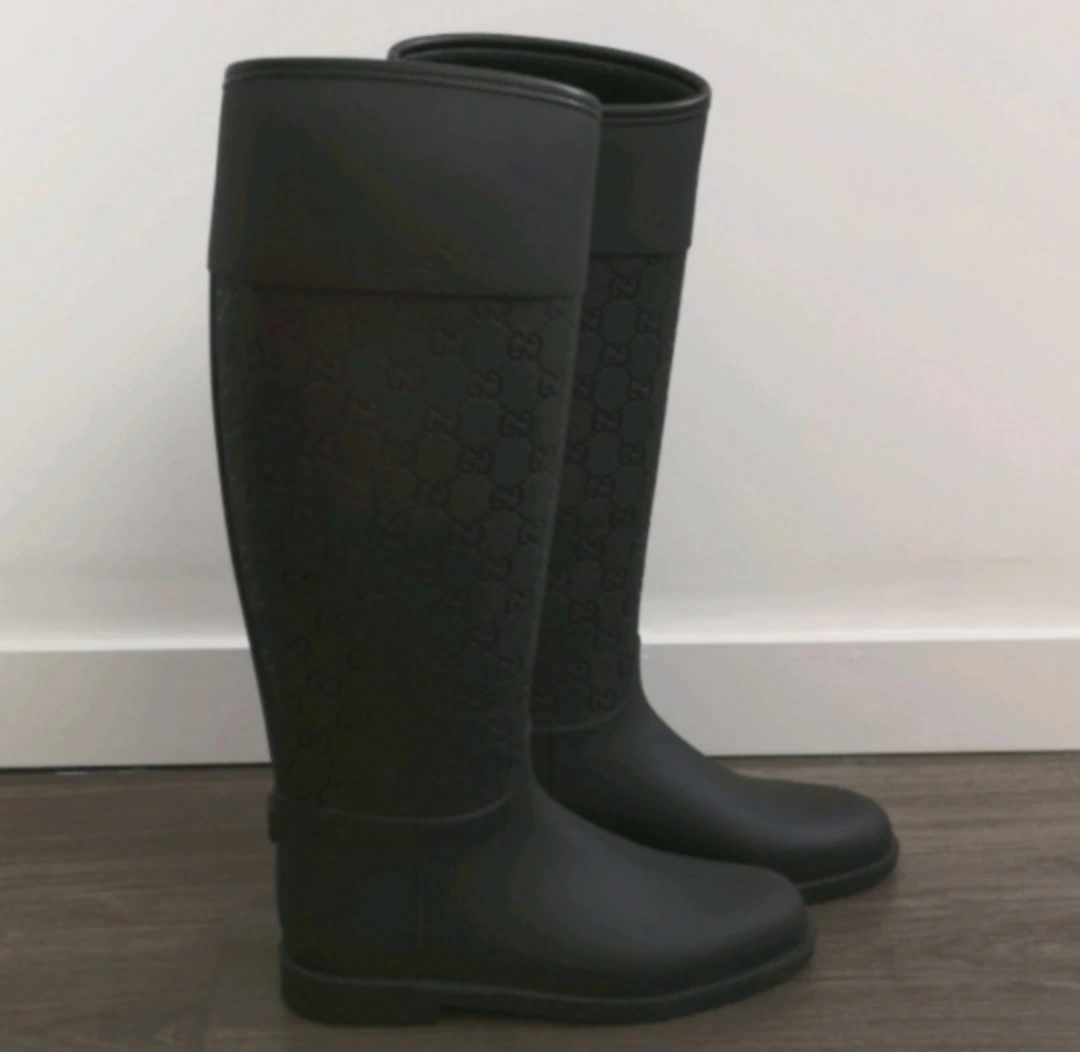 Mint condition! Very small scuffs but the camera has really enhanced it, they are not that visible in person. Selling because I can't fit my calves into them but I love these boots! Have not even worn them ๐ญ. Purchased prelove from Japan, authenticated by Real Authentication. Size 36 w/dustbags Circumference 14" or 36cm 16" or 41cm high