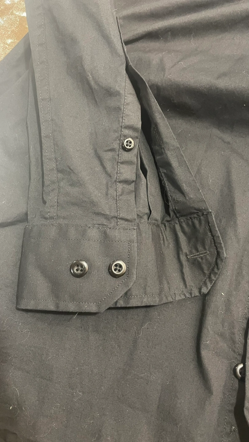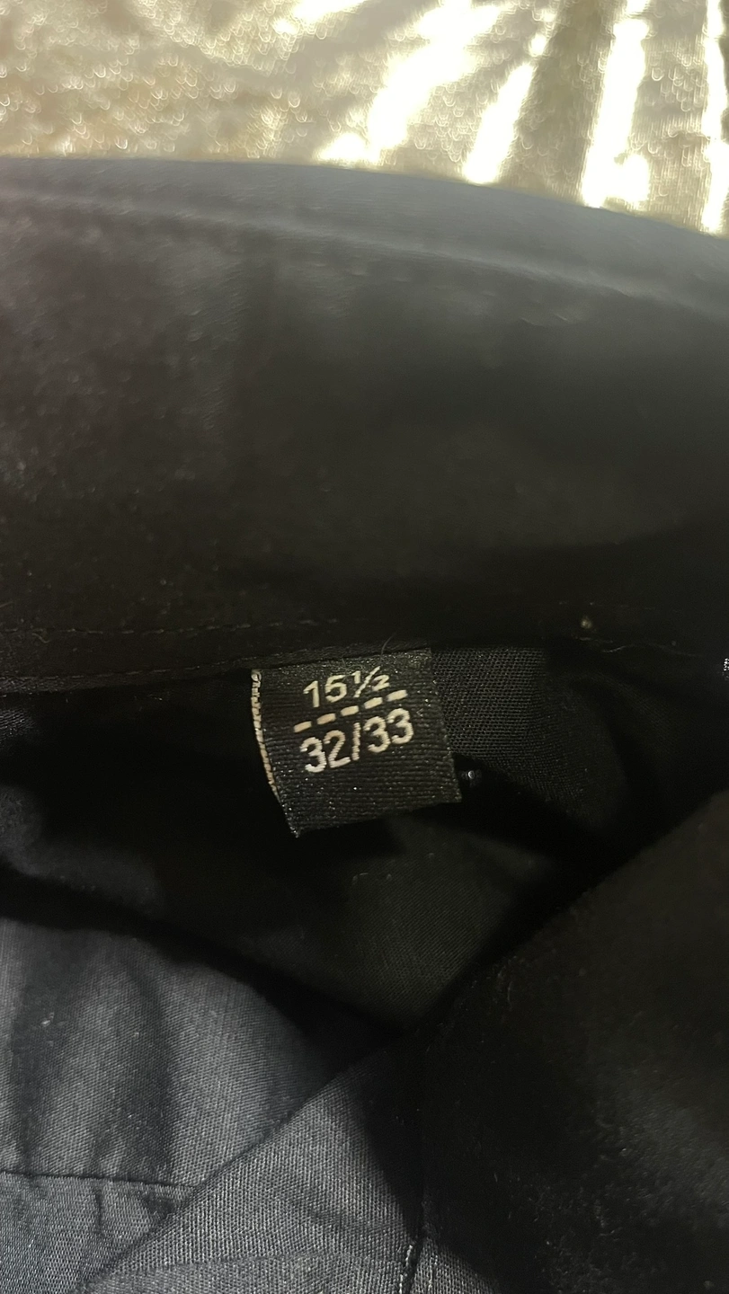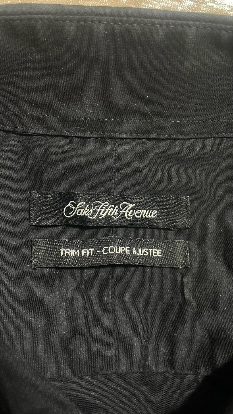 Saks Fifth Avenue long sleeve black 98% cotton shirt Neck 15 1/2 or 32/33 Arm measures 23 inches from top of the shoulder to outside cuff Tags still have washing instructions Check pics for details