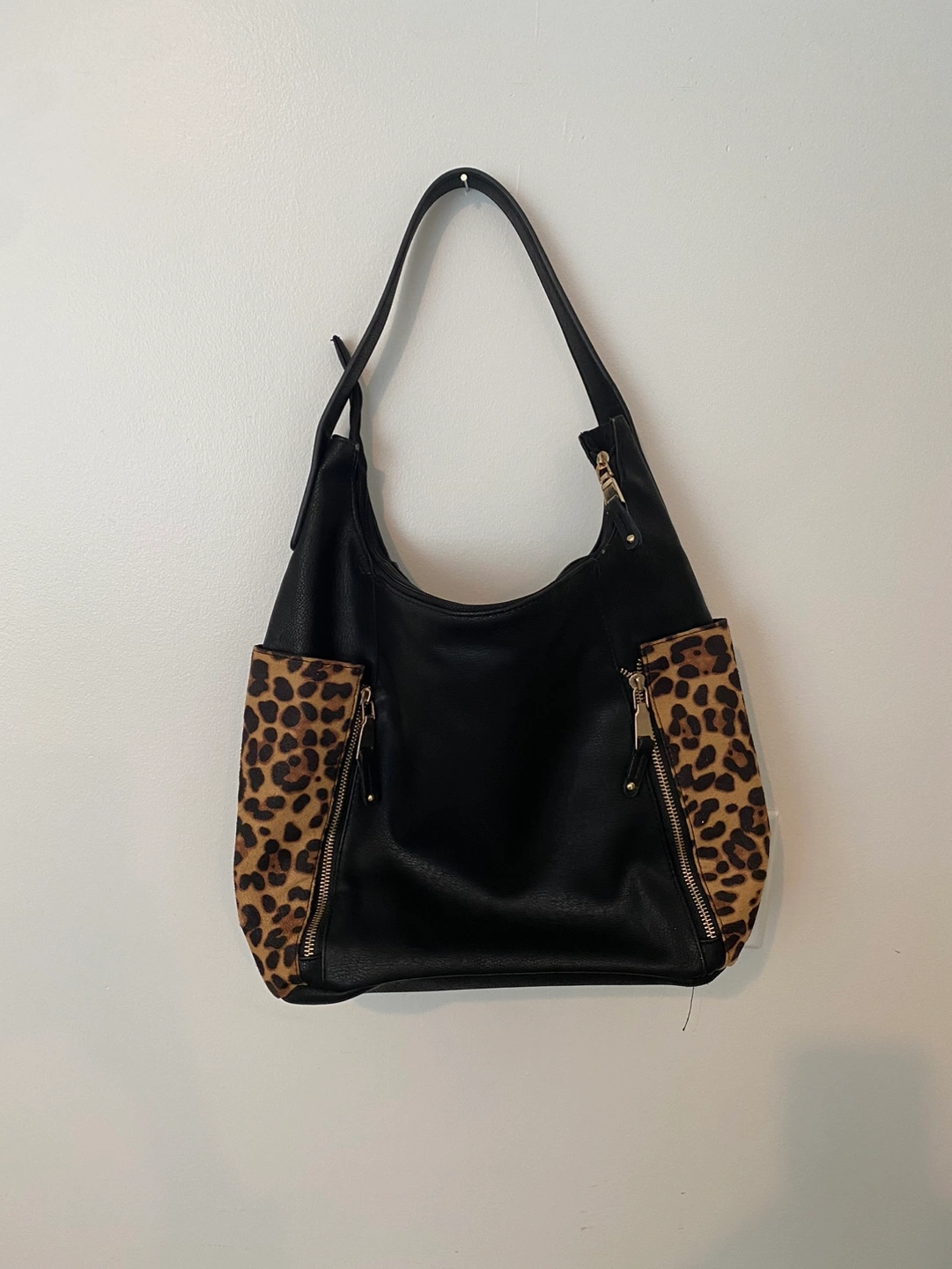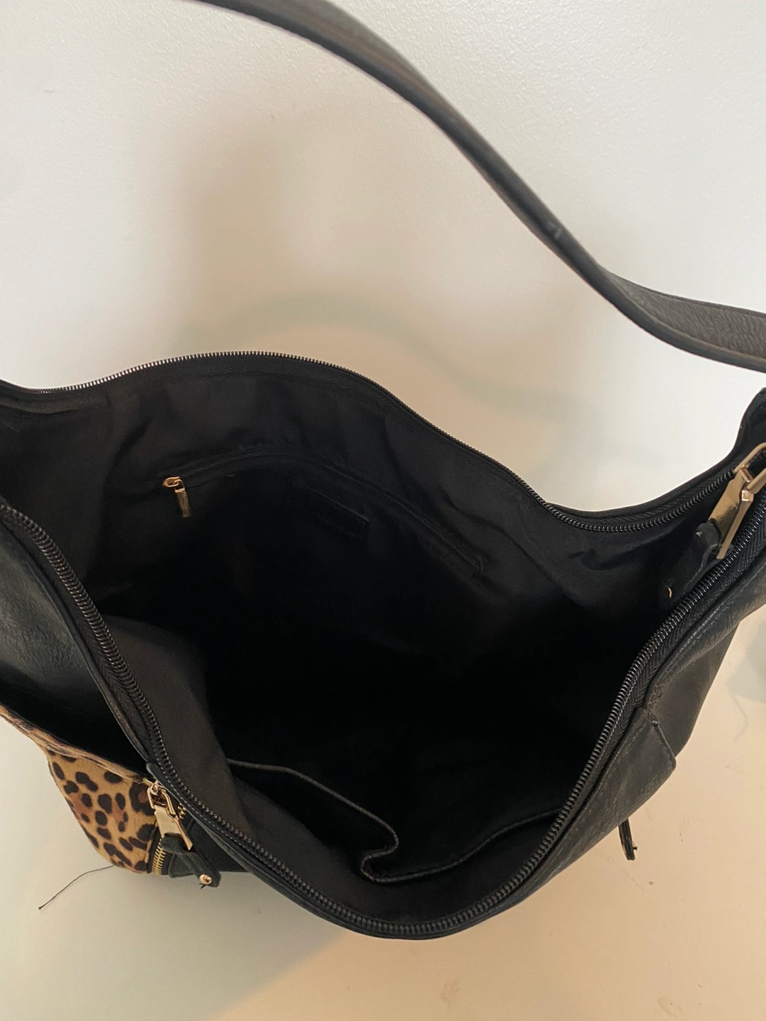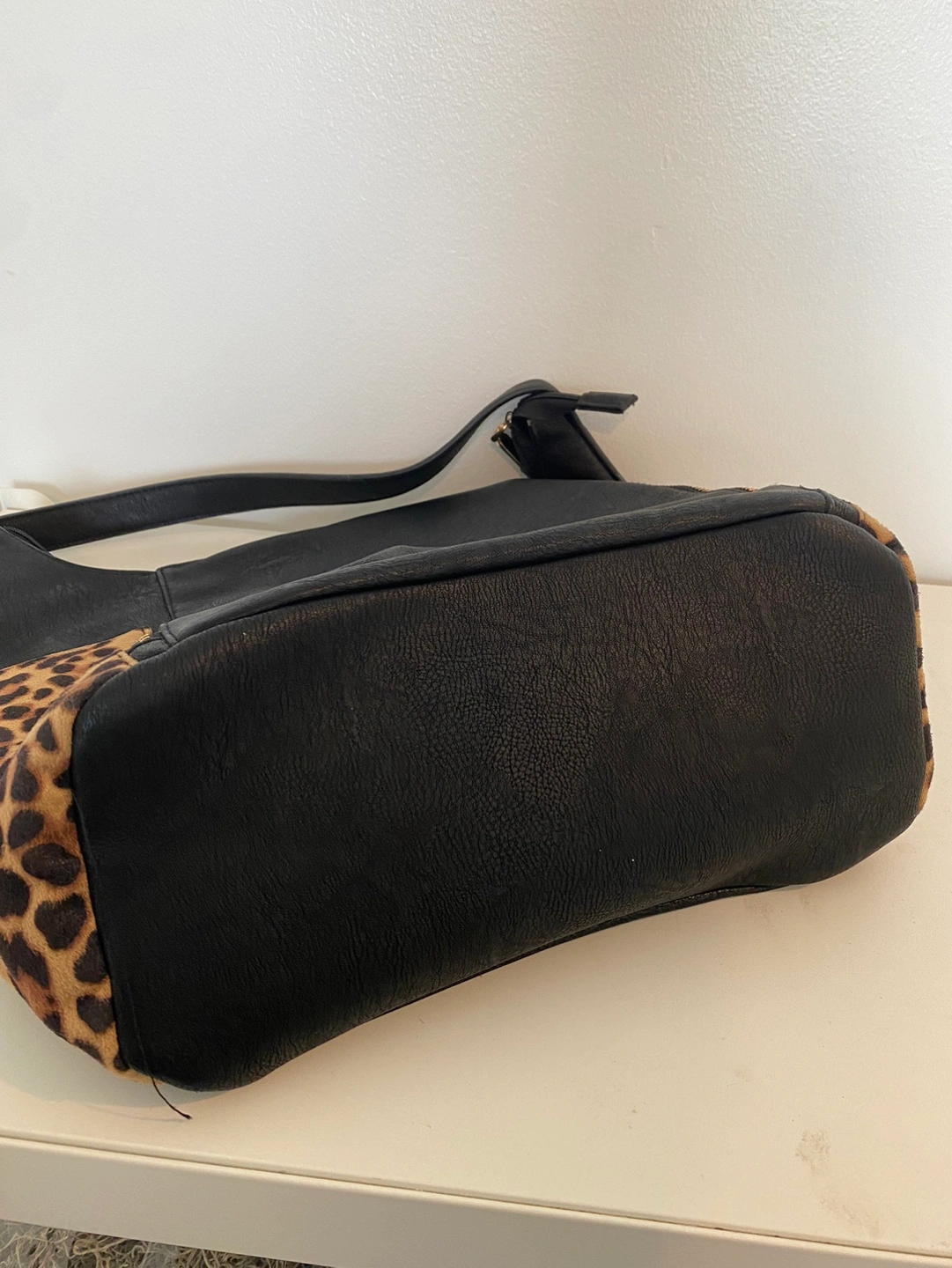 Club Rochelier purse: • Black in colour with leopard print side pockets • All zippers work well • Approx 15”w x 12”h + plus handle • There’s a couple of small scuff marks. See last 2 photos. Pick up ONLY in East End Toronto (Gerrard St East and Jones Ave area)