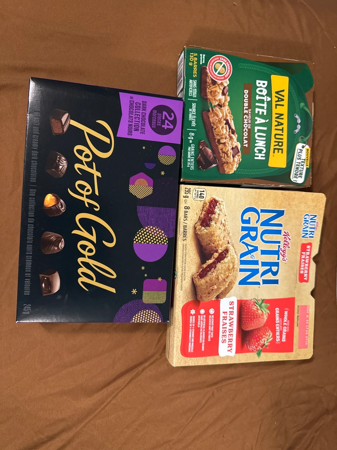 Nature valley- unopened Nutri grain- 7 left Chocolates 12/24 left Pickup only please