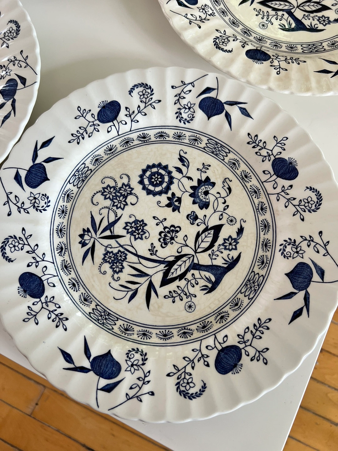 Selling a set of 4 J&G Meakin plates. Classic white and blue nordic. Design is superb and these look great in person. Made in England. Plates are in good condition apart from 1 small chip on the bottom of one of the plates (pictured). Feel free to message me if you have any questions or are interested in buying. Pickup by runnymede and annette, Toronto.