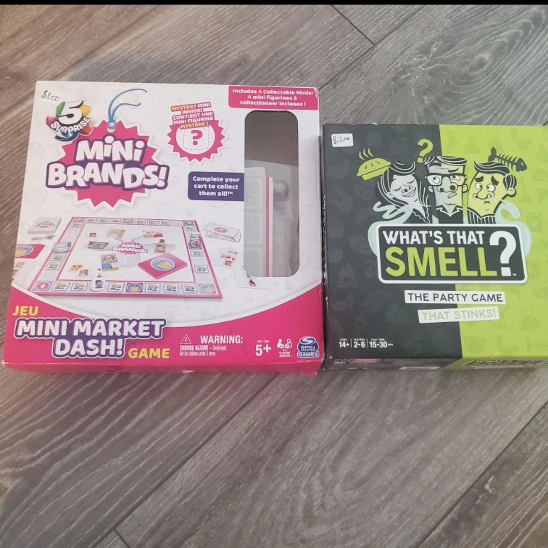 Take both or separately, negotiable price. 1st one: Mini Brands! $8.00 Played only once NOT RECOMENDED FOR CHILDREN UNDER 5YRS DUE TO CHOCKING HAZARD. [SOLD] 2nd one: What's That Smell? $12.00 Never played, all cards are untouched Not recommend for under 14yrs. Coming from a smoke and pet free house. Available for view and pickup.