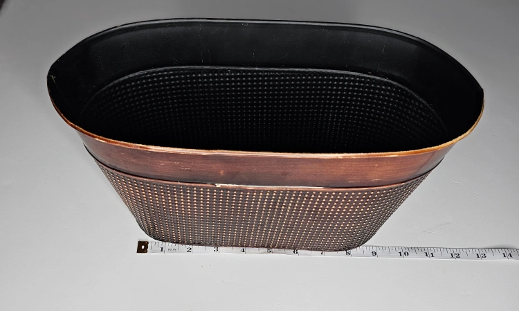 *** PICK-UP AT BROADVIEW & DANFORTH AREA *** Faux distressed copper. Pretty sure it's tin. Possible uses: Planter Gift basket Toilet paper storage Rolled towel storage Mittens & gloves storage or anything else your creative mind might take you! Measurements included in my photos.
