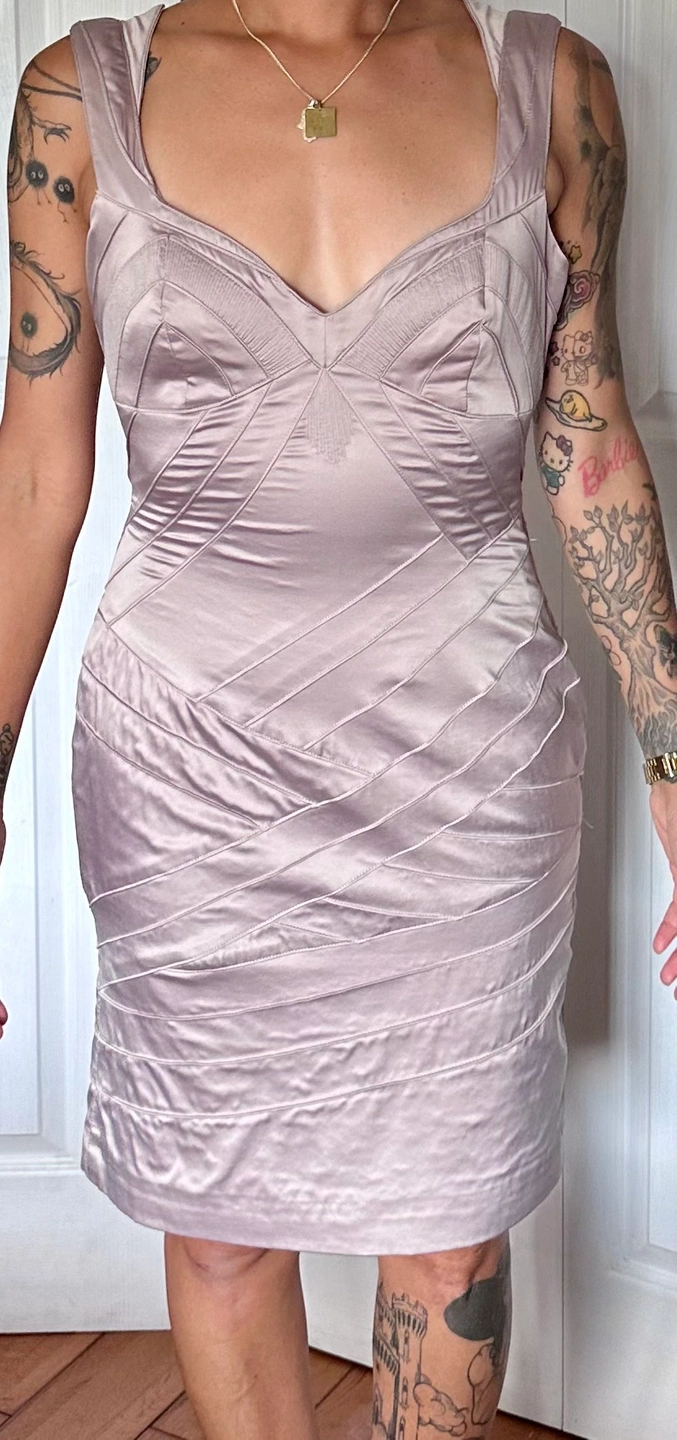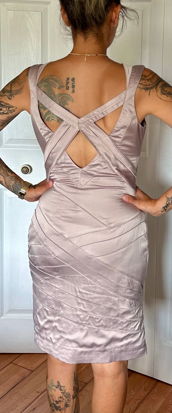 Closet Cleaning! I am selling a classy and cute cocktail dress. Fabric is a Satin and colour is champagne. Length fits just at my knee for me and I’m just under 5”4. There is an invisible zipper on the back with a hook and eye closure. It has been used once and dry cleaned. Price is Negotiable