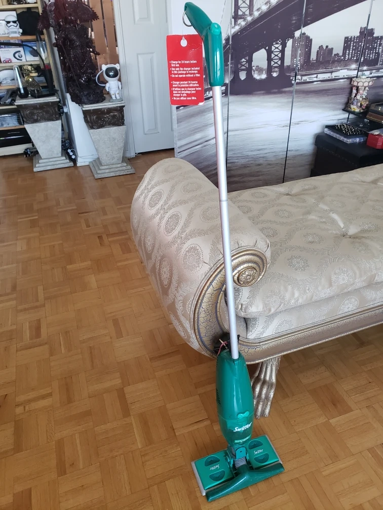 Rechargeable swiffer in like new condition, wash and vacuum at the same time, wash and reuse the filter many times, filter is brand new
