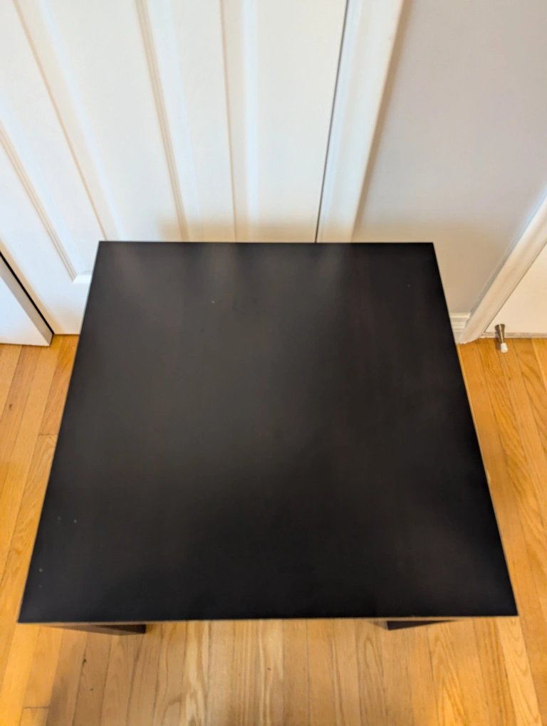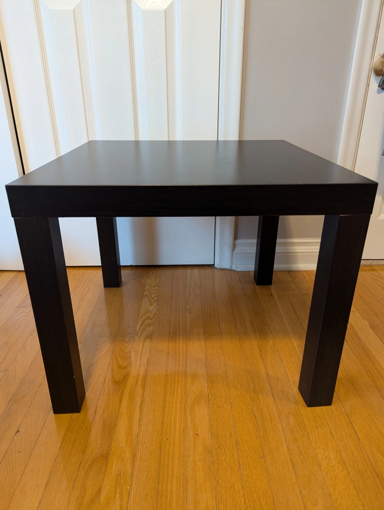 Black Ikea lack coffee table pre assembled small scratches from day to day use. Can be touch-up with touch up pen or permanent marker complementary local delivery (Etobicoke) available depending on location