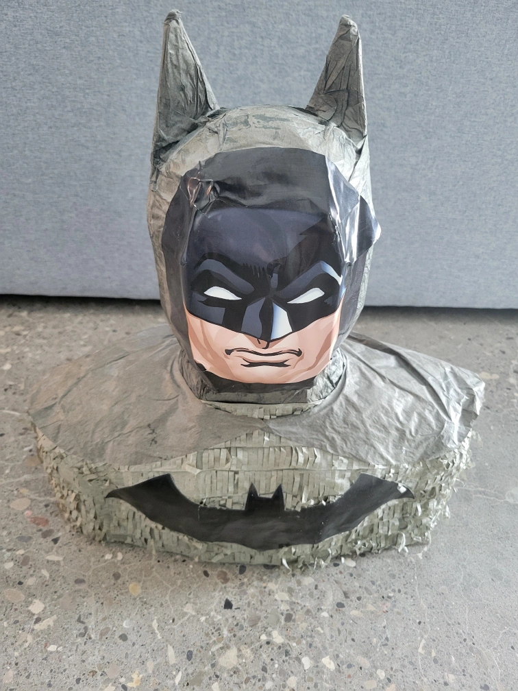 Brand new and ready to use for your party! https://www.partycity.ca/en/pdp/dc-batman-pinata-hanging-pull-string-decoration-black-15-in-holds-2lb-of-pinata-filler-for-birthday-parties-8443012p.html?gad_source=1&gclid=CjwKCAjwqf20BhBwEiwAt7dtdYe2HXUlZ3wr9fNMJ_gX6lpaTFuC4IbNS-ZN4VXUnNRScs-5CEUhcRoCVrMQAvD_BwE&gclsrc=aw.ds#store=838