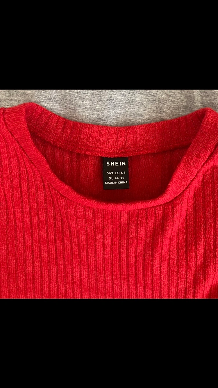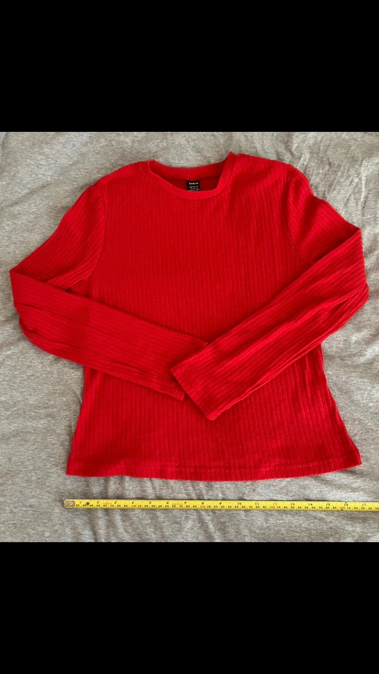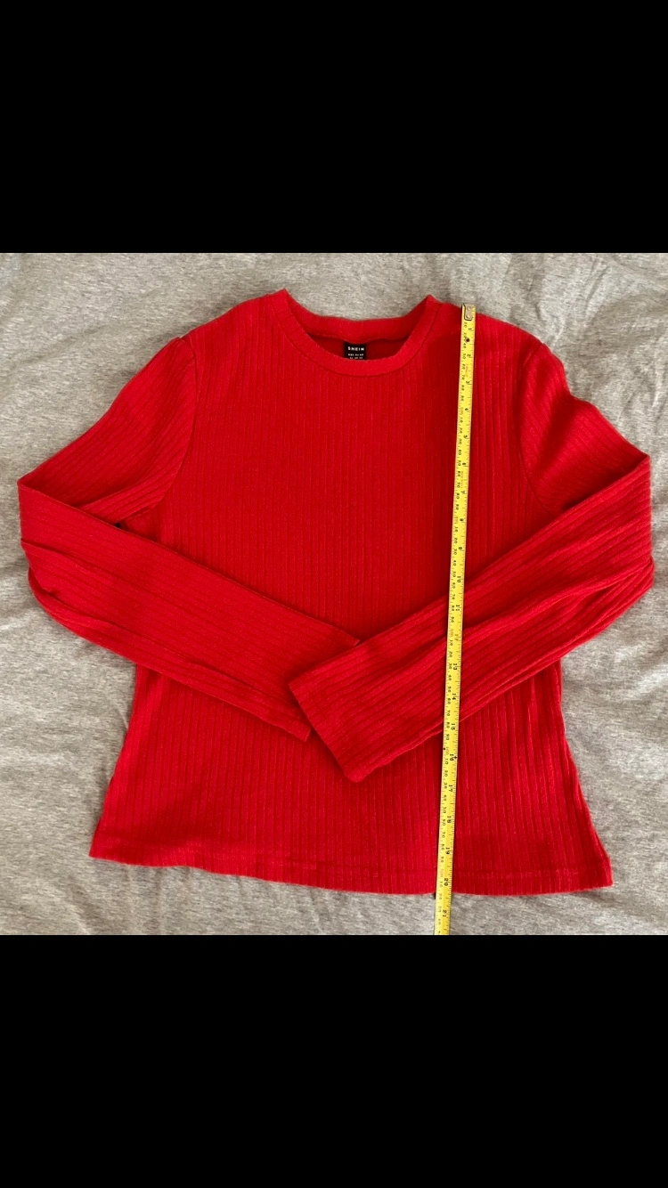 Women’s Shein red long sleeved ribbed shirt, size XL, I washed it when I first bought it, but it’s never been worn. It’s sooo soft, has good stretch, and will look great in a variety of different outfits! It’s a Berry red with a slight pink undertone colour in certain lighting, very pretty colour. Shein tops notoriously fit small, I normally wear a size Small or Medium, but if you always wear a Size XL in Shein, then this will fit you, please check measurements down below. ⬇️ I’ll be moving eventually so I’m selling things ahead of time, I measured this myself and with the shirt lying flat, the measurements are approximately: Body is 20.5” inches in length, bust is 16” inches across. Selling for only $5! 👚🍒❤️🩷🍓