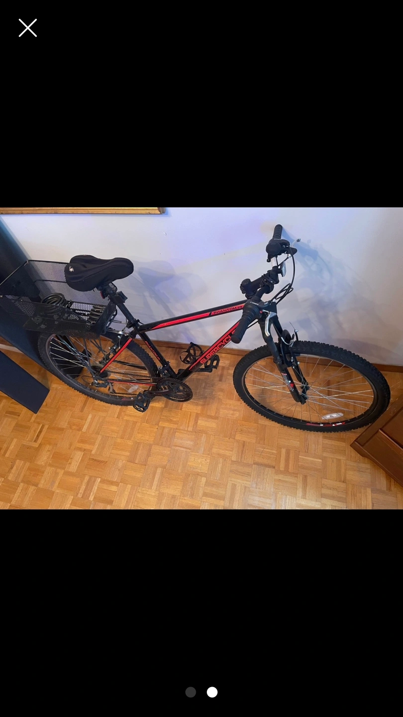 A used Supercycle Phantom 29" in good condition. Whether you are riding around the neighbourhood or doing some light trail riding, this bike is great to get you started. With a front suspension fork, and easy to use 21-speed grip shifting system, and 29" alloy wheels. Includes basket at the back, and can be removed easily. Just checked tires and works great. Cash only. Non-negotiable price.