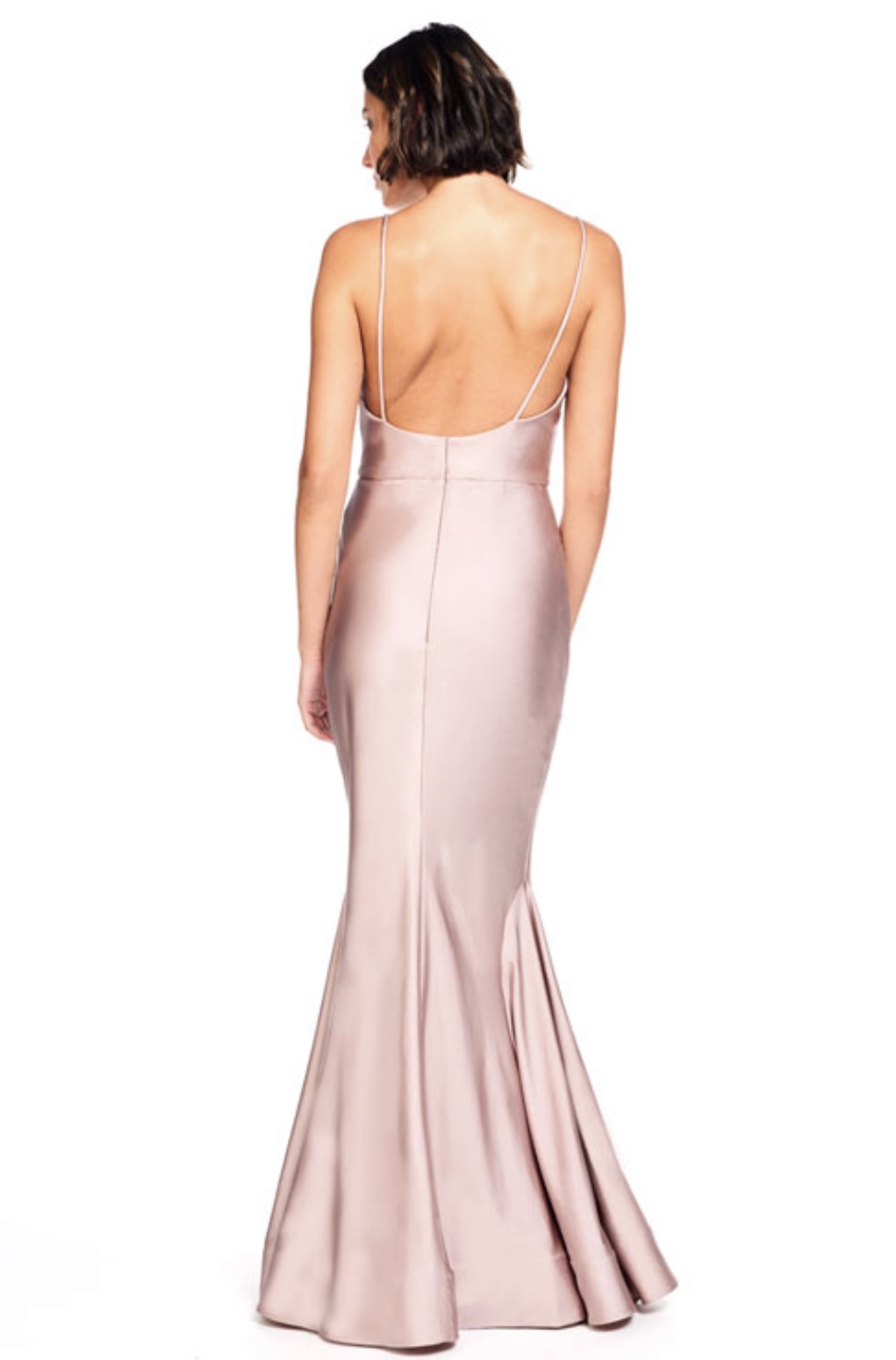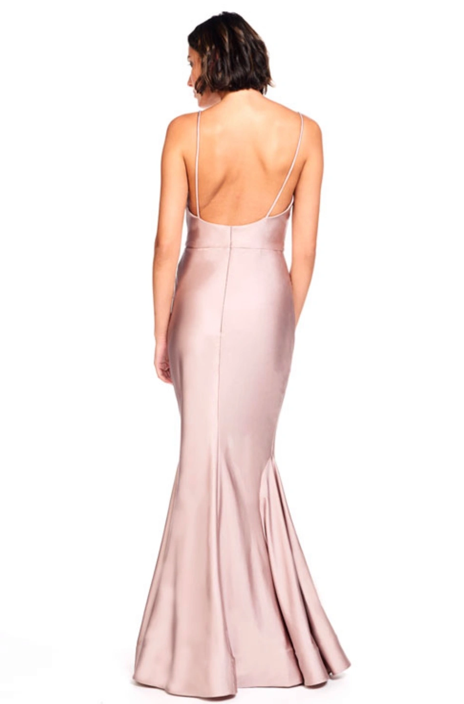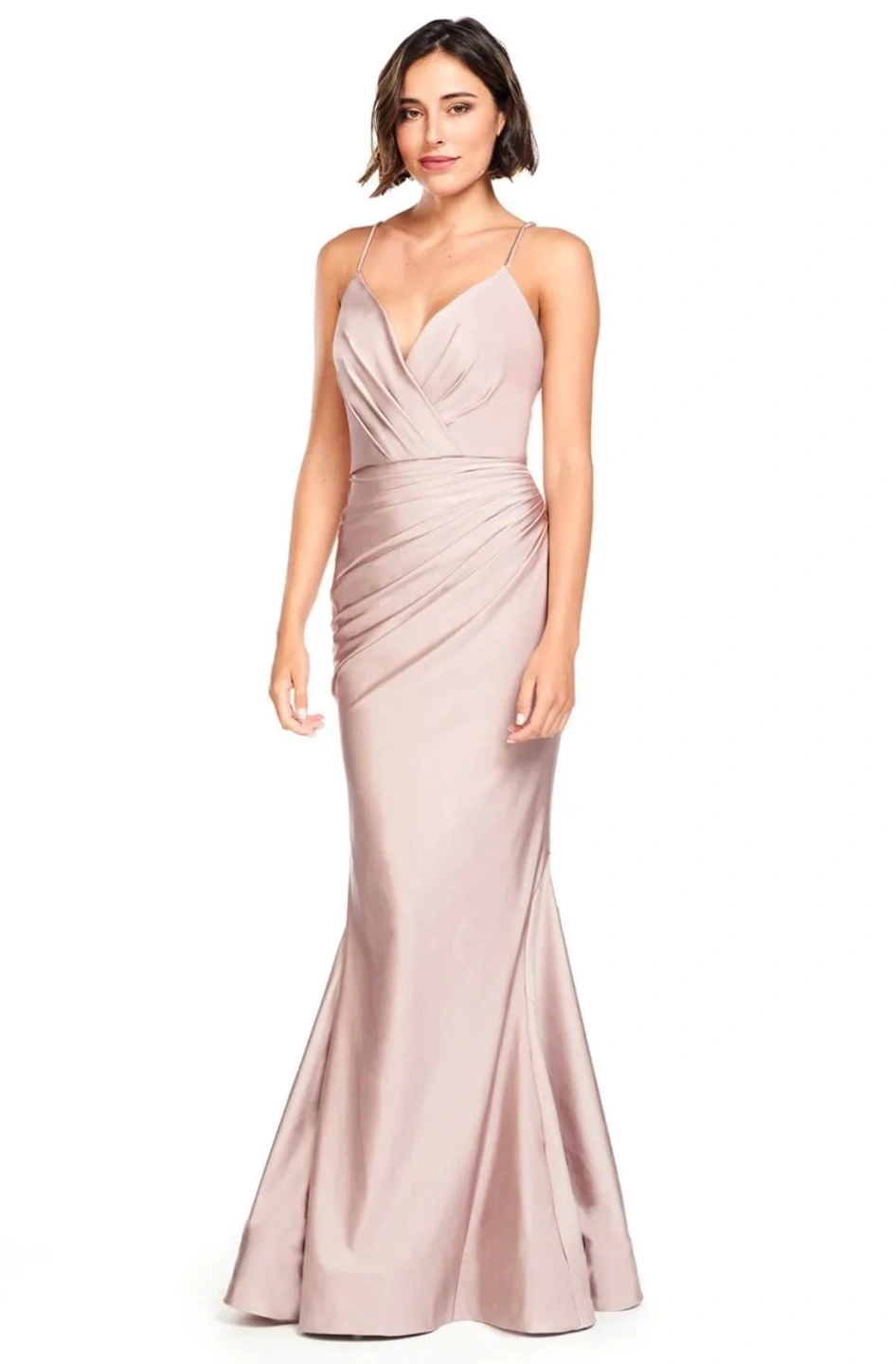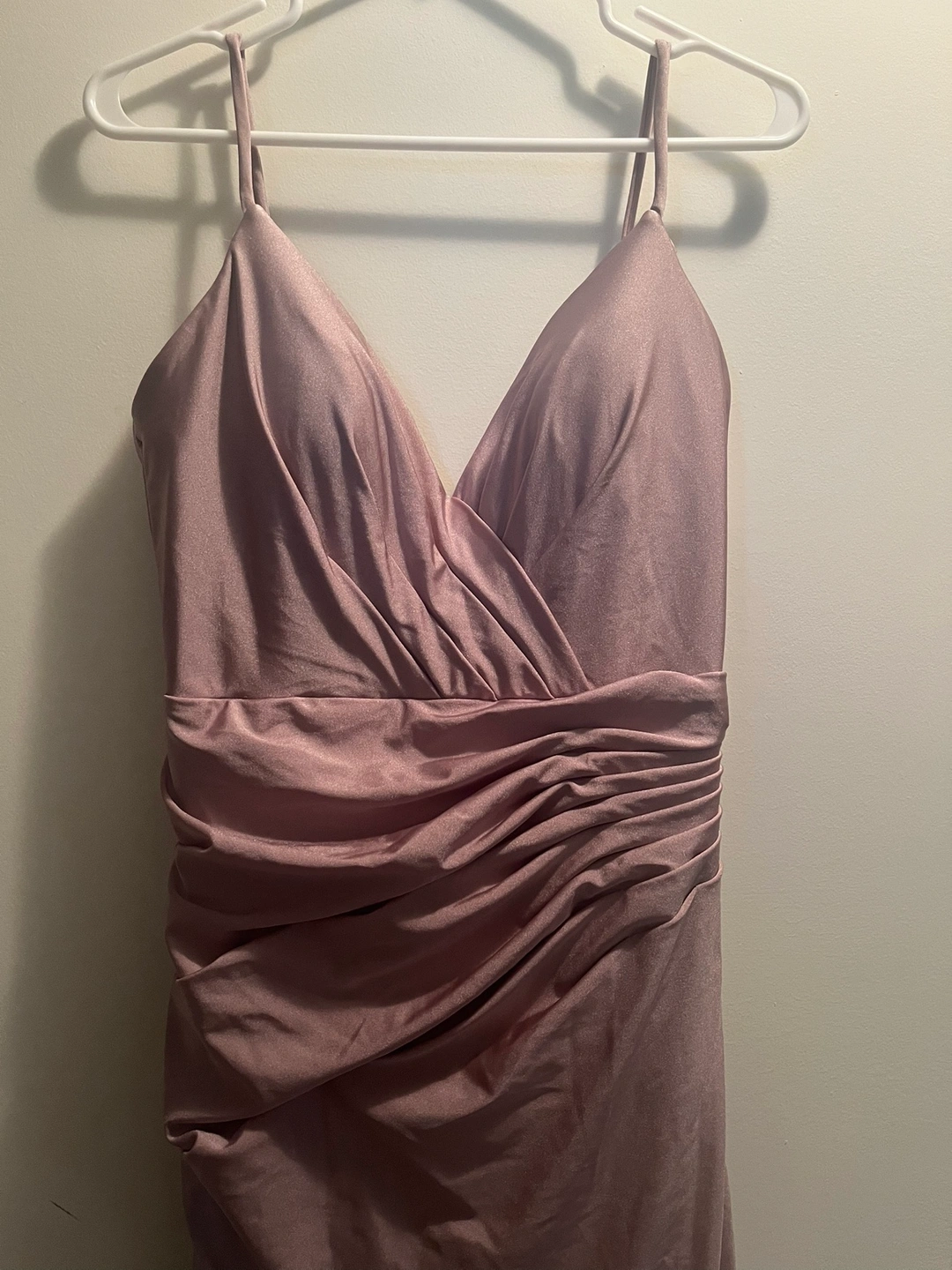 New without tags Pickup Brampton or downtown Toronto Spaghetti strap overlapping V-neck ruched bodice with diagonal pleated skirt / criss-cross draped panels over A-line skirt. 4-way Stretch for an effortless fit. This style includes self knee length lining. Silhouette:Mermaid Type:Bridesmaid Color:Pink Neckline:Halter Dress Length:Floor Waist Style:Natural Embellishment: Ruching