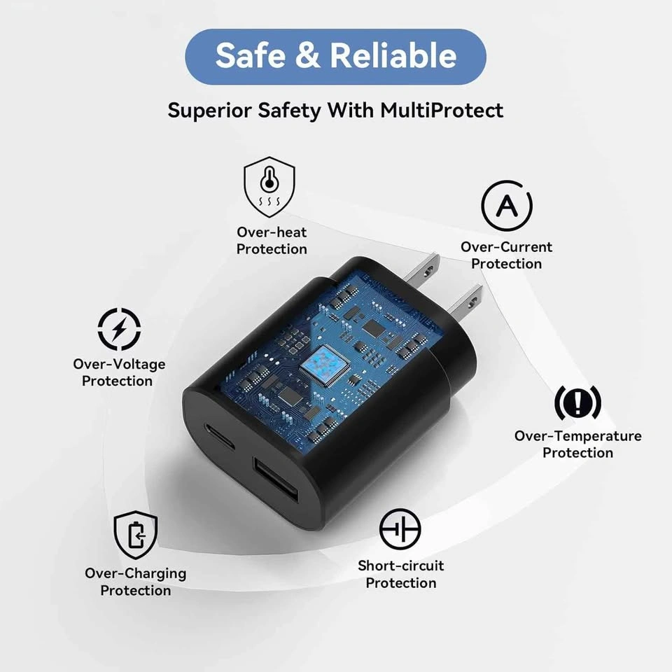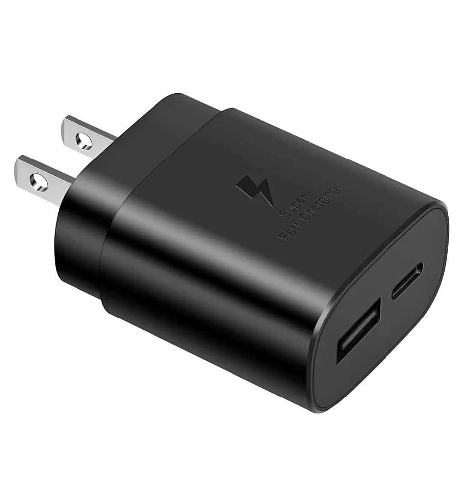 Pick up downtown Toronto only at Yonge and College. No cable is included. Only the charging brick. Our USB C wall charger features a 25W USB-C Power Delivery port and an 18W Quick Charger USB-A fast charging port, allowing you to charge two devices simultaneously. Our Adaptive USB C wall charger has an output of up to 25W. Tested, this USB C charging block can charge galaxy s23/s22/s21 series from 0% to 60% in 30 minutes (full in 50 mins), and take about 1 hour to fully charge an iPhone 15, which is 75% faster than a standard charger. Our Type c cell phone charging block has passed a 4-hour aging test before leaving the factory to ensure excellent charging performance. c type fast charger has built-in multiple protections to avoid over-charging, over-heating, over-voltage, over-current, and short-circuit problems, maximizing battery life. Intelligent chip automatically matches the current required by the device to ensure safer and more stable charging. Use our 25W Type C charger to charge Galaxy S23 Ultra/S23/S23+/S22 Ultra/S22/S22+/S21/S21+/S21 Ultra/S20/S20+/S20 Ultra/S10/S10+/Note 20/10/9/8 quickly. /Z Fold/Z Flip/iPhone 15/15 Plus/15 Pro/15 Pro Max/Galaxy Tab S7/S7+, and more. This USB C charger kit can fast charge almost any USB-C powered device.