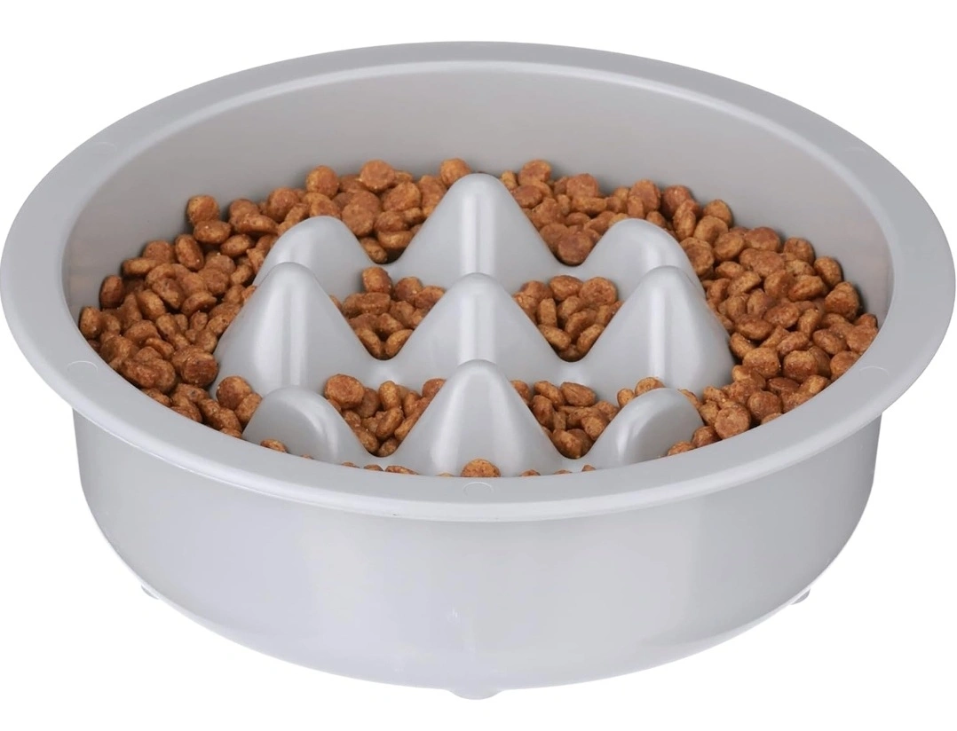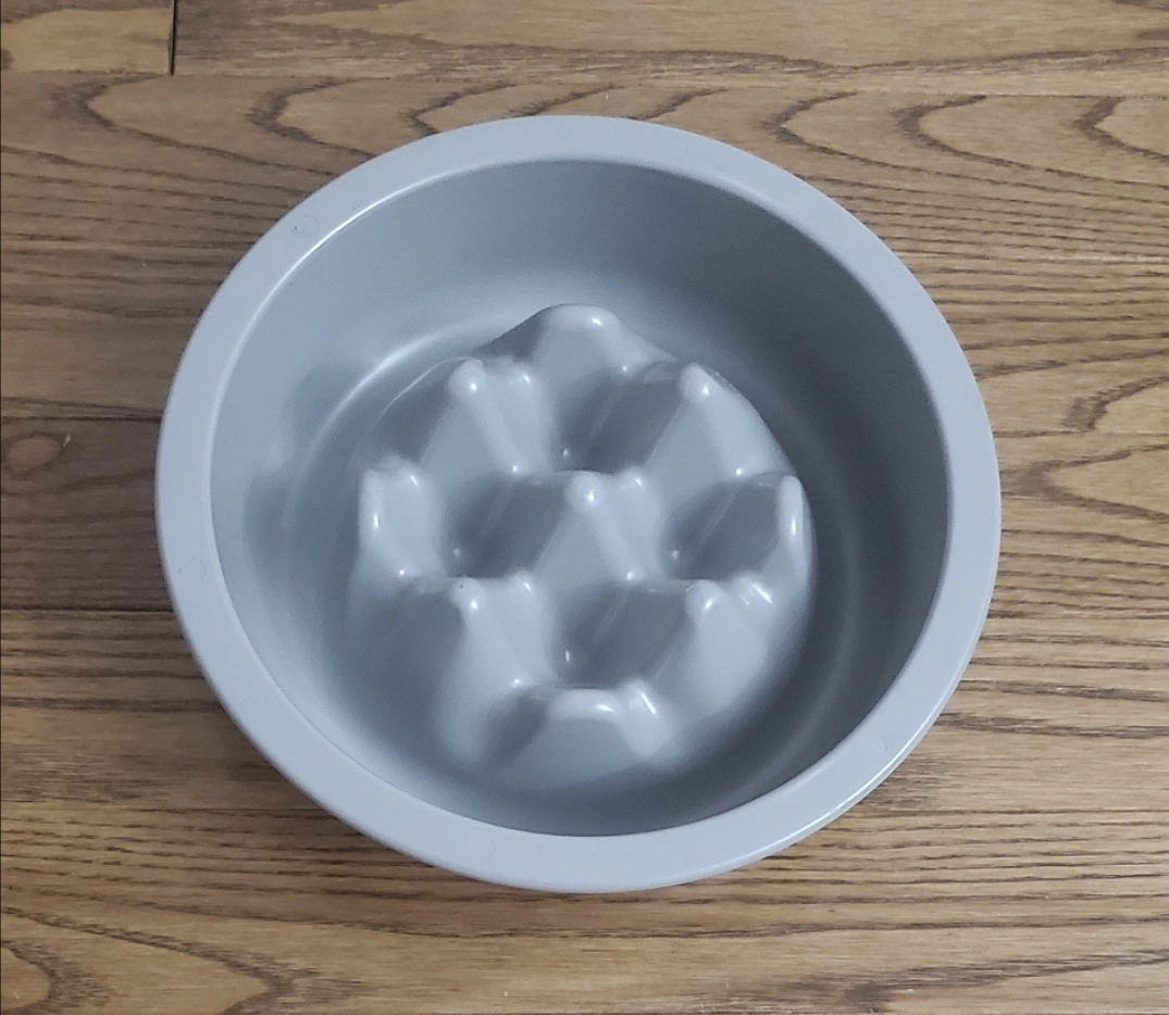 Brand New and Never Used Several Available Slows down eating Features nine peaks that create small individual pockets for food By separating the food into smaller servings, this bowl prevents gulping and overeating, which will reduce bloat, vomiting, choking, and indigestion. Suitable for cats and dogs in any life stage and breeds of all sizes Holds up to 2 cups of food Fits most elevated feeders with 2 Quart bowls Measures 8.25” across the top, 7” at the base, and 2.5” tall Non skid bottom BPA and phthalate-free Top-rack dishwasher safe ***Please Check Out My Other Ads