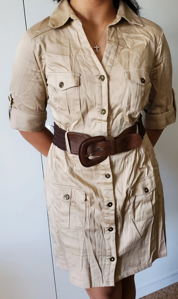 Wrinkled, but I can iron it when you purchase. Just took out from the box. Belt is not part of the dress. This belt is not that great. You can wear it w/o belt or can use diffrent belt.
