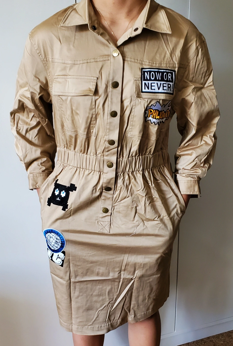 I can iron this dress when you purchase it. Just took out from the box. Good quality made. Size L shows on the tag, but definitely fit for size small/medium.