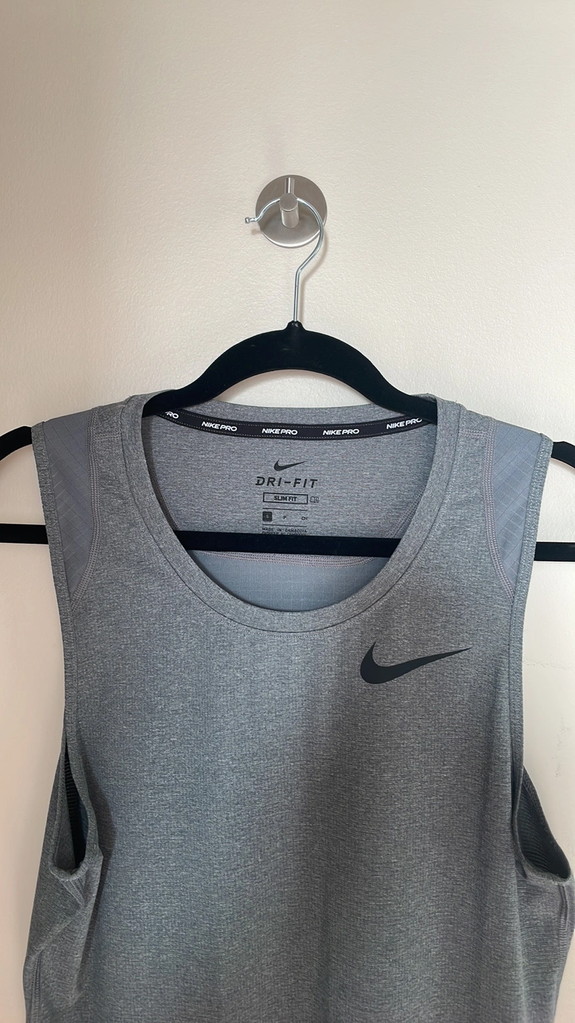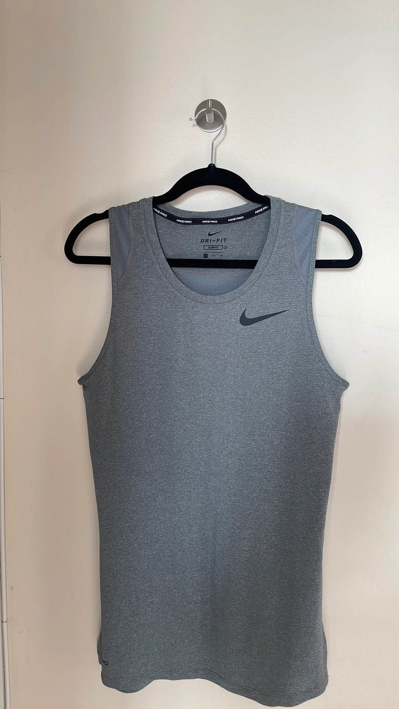 MEETING LOCATION: ✅ Scarborough Town Centre Mall 💰 Cash payment only ⭐️ Please check my listing for more items! NIKE PRO Tank (Small Size) ***Dri-Fit ***SLIM FIT ***In light grey colour ***EXCELLENT CONDITION, absolutely no rips or stains. ***Worn a few times only. ***Measurements (approximately in inches): 29” L (shoulder to hem) 16” chest