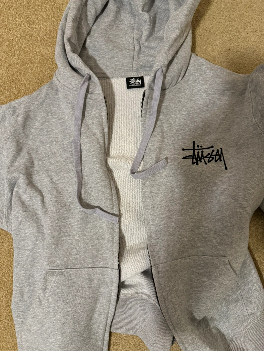 Stussy Grey Zip Up hoodie , Only worn twice, open to negotiate price :) !! Open to trades ✅ Authenticated ✅ Open to offers ✅