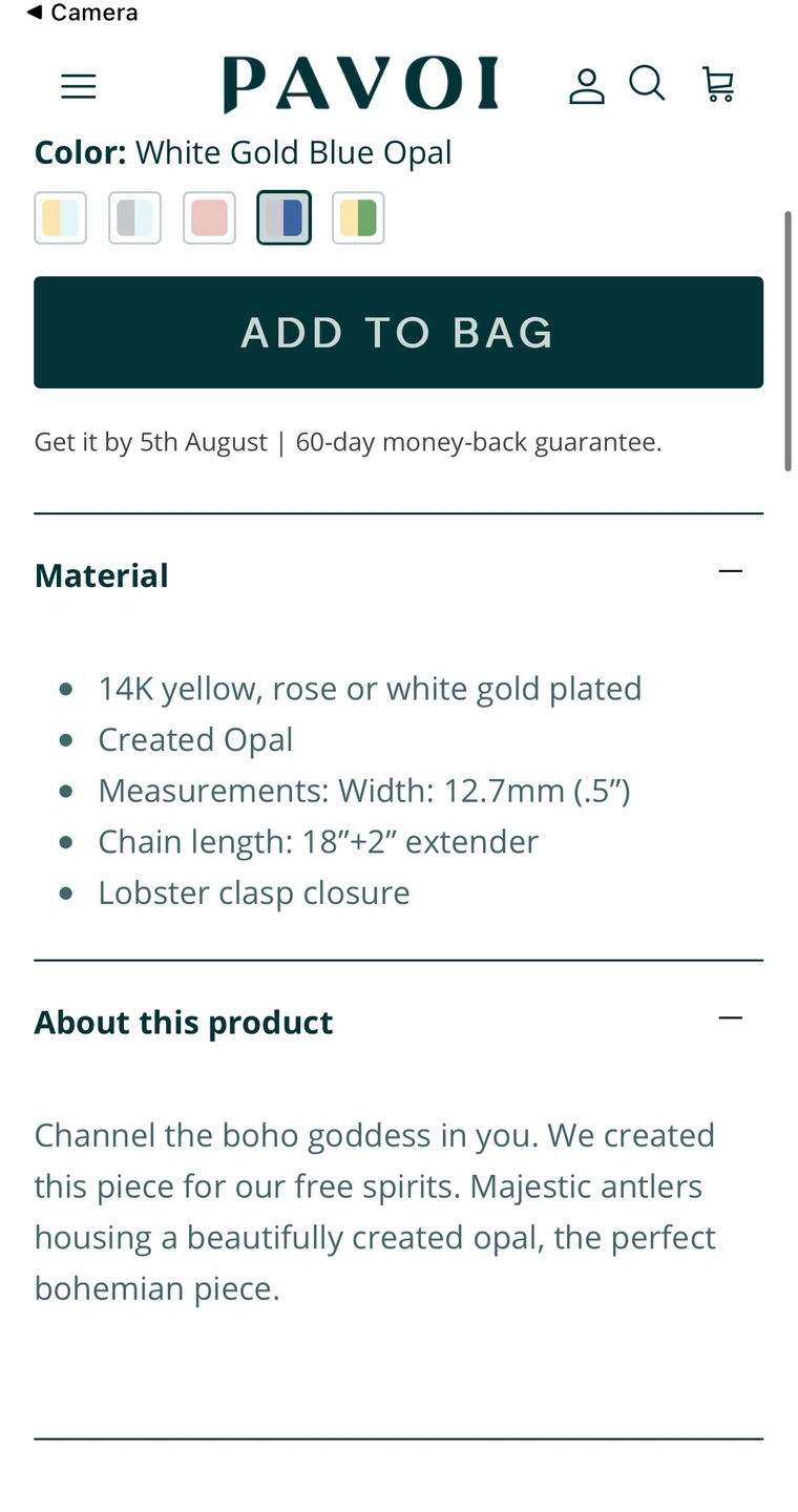 Material • 14K yellow, rose or white gold plated • Created Opal • Measurements: Width: 12.7mm (.5") • Chain length: 18"+2" extender • Lobster clasp closure