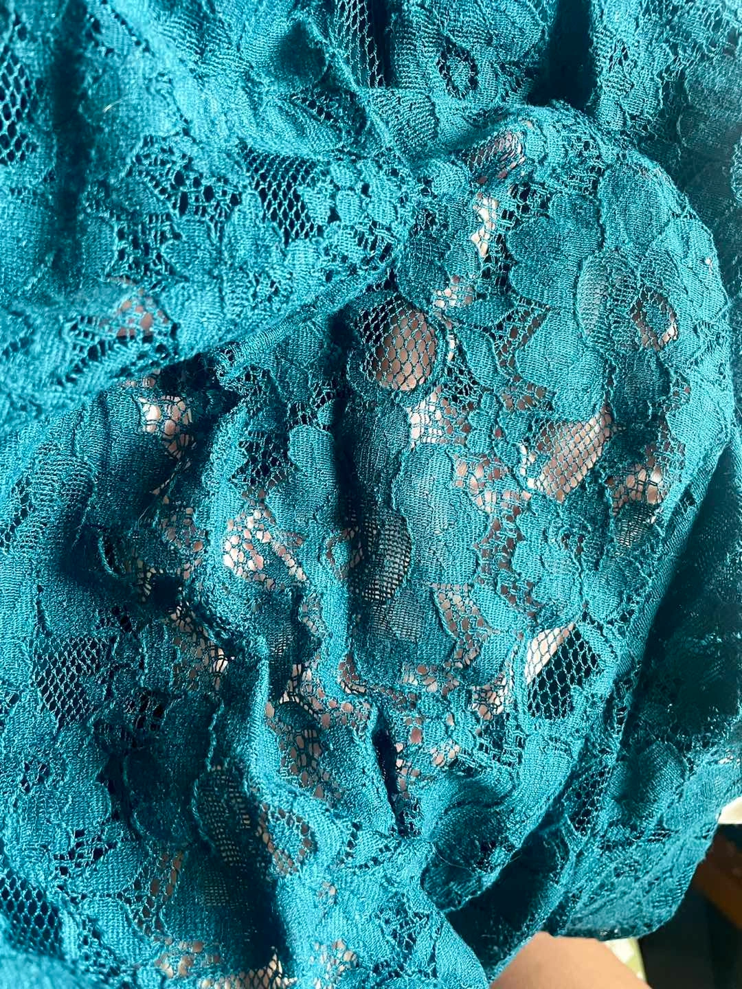 Beautiful dress perfect for summer/garden events! Deep teal color Swiss dots and lace overlay Key hole cut out in the back + gorgeous little buttons hidden zipper on the back, fully lined Fit and flare cut was gifted this to attend a wedding but didn’t end up using it so it’s pretty much brand new. Only tried on never worn out. Never laundered. There’s a medium amount of stretch given the lace so it fits like a glove. Fit true to US small size. Outer layer: 67% cotton, 33% nylon Lining: 100% polyester Pick up at Church / Wellesley Check out my other items! Happy to bundle 🛍️ Cash only.