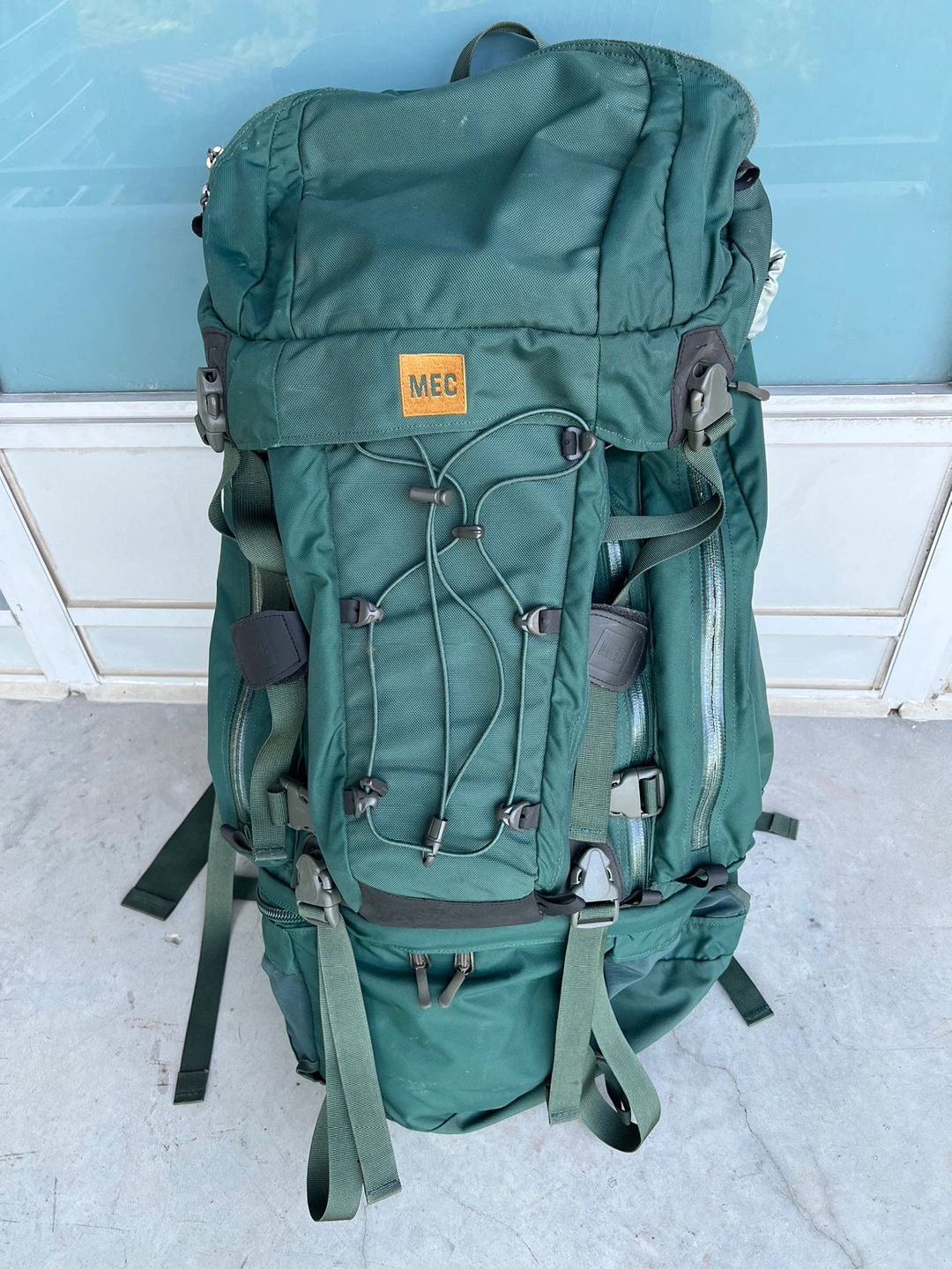 This is a green MEC Ibex 65L backpack (discontinued) with a padded back and hip belt. It has multiple pockets and compartments for organizing gear and a large main compartment. The backpack is in good condition: the inside plastic hooks that hold the separator that divides the main large compartment from the lower sleeping bag compartment will need to be replaced. Otherwise, it is very sturdy and served various multi-day overnight backpacking trips! Giving it away as #freecycle because lately I’m going on shorter trips and I got a smaller one for these. Details from MEC: https://www.mec.ca/en/product/5011-458/ibex-65l-backpack Pick up only.