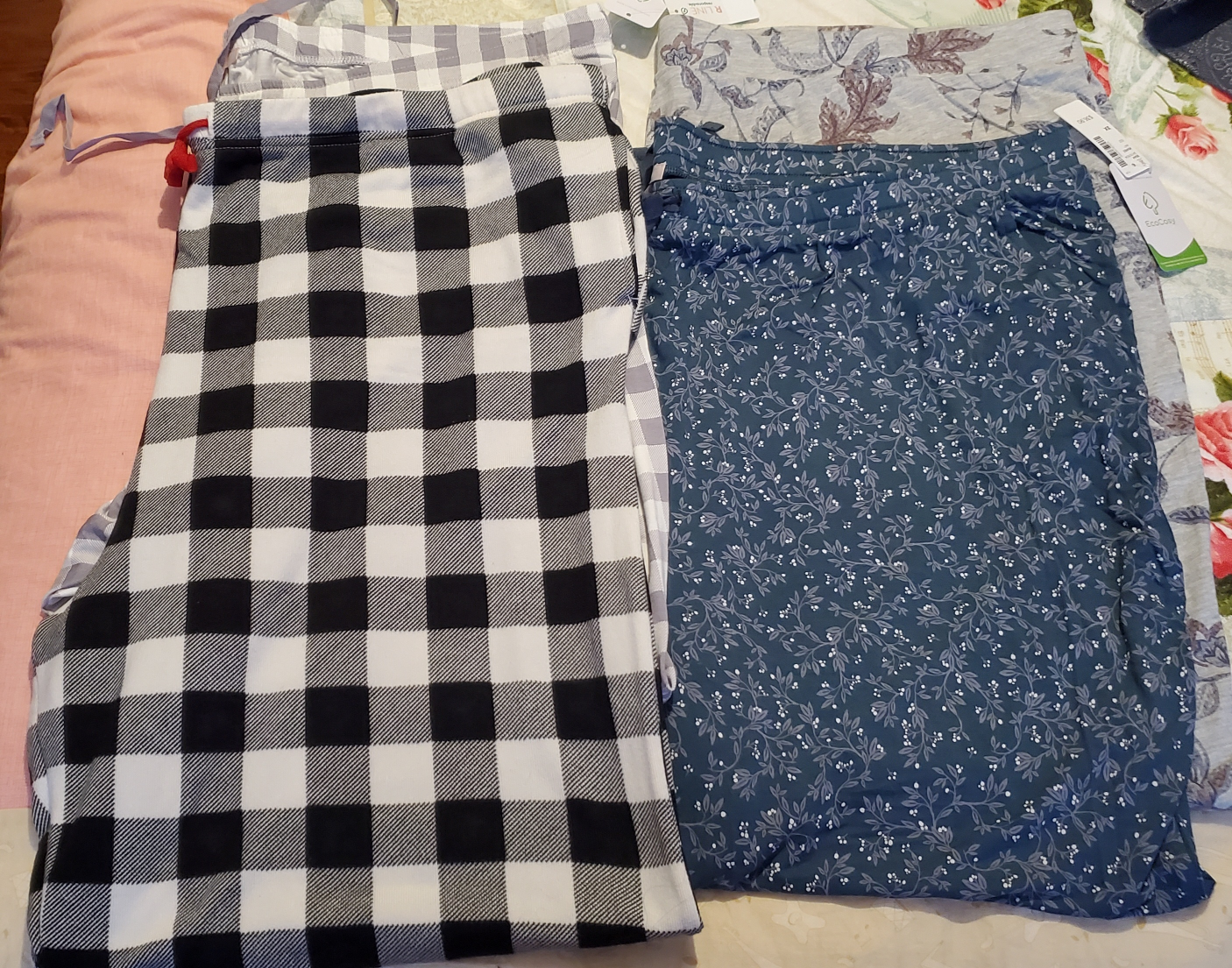 These are 4 pairs of sleep pants various styles and lenghts. The black and white plaid are a soft, comfortable material. Purple plaid is full length and lightweight. Floral prints x2 are lightweight and capri/flood length. Cross posted. SFPF HOME Looking for fastest pick up. Delivery not available. Brimley & Eglinton for pick up. No returns.