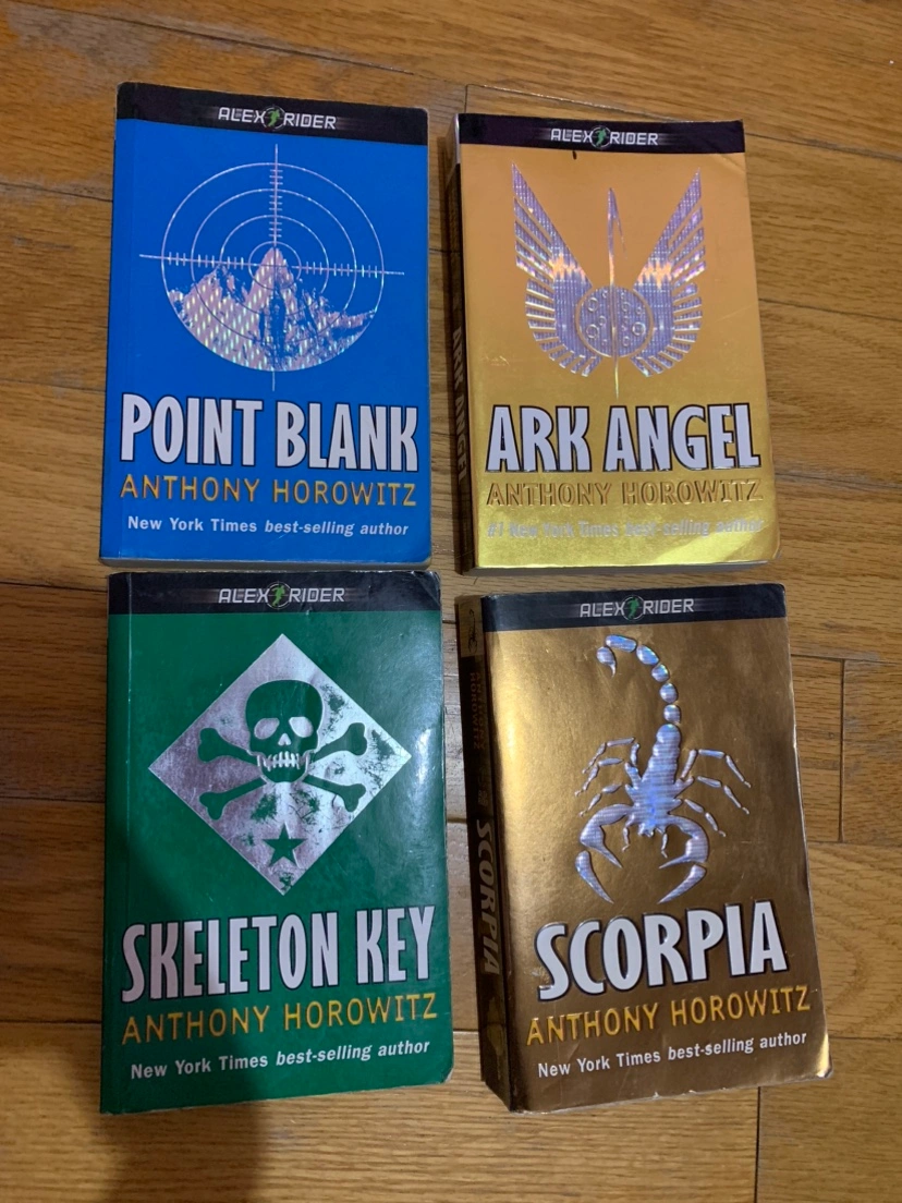 I bought these books from the library in the past because I enjoyed the Alex Rider series. Giving this away for free since I am decluttering my books. They are in good condition, like what you expect when getting a used book from the library.