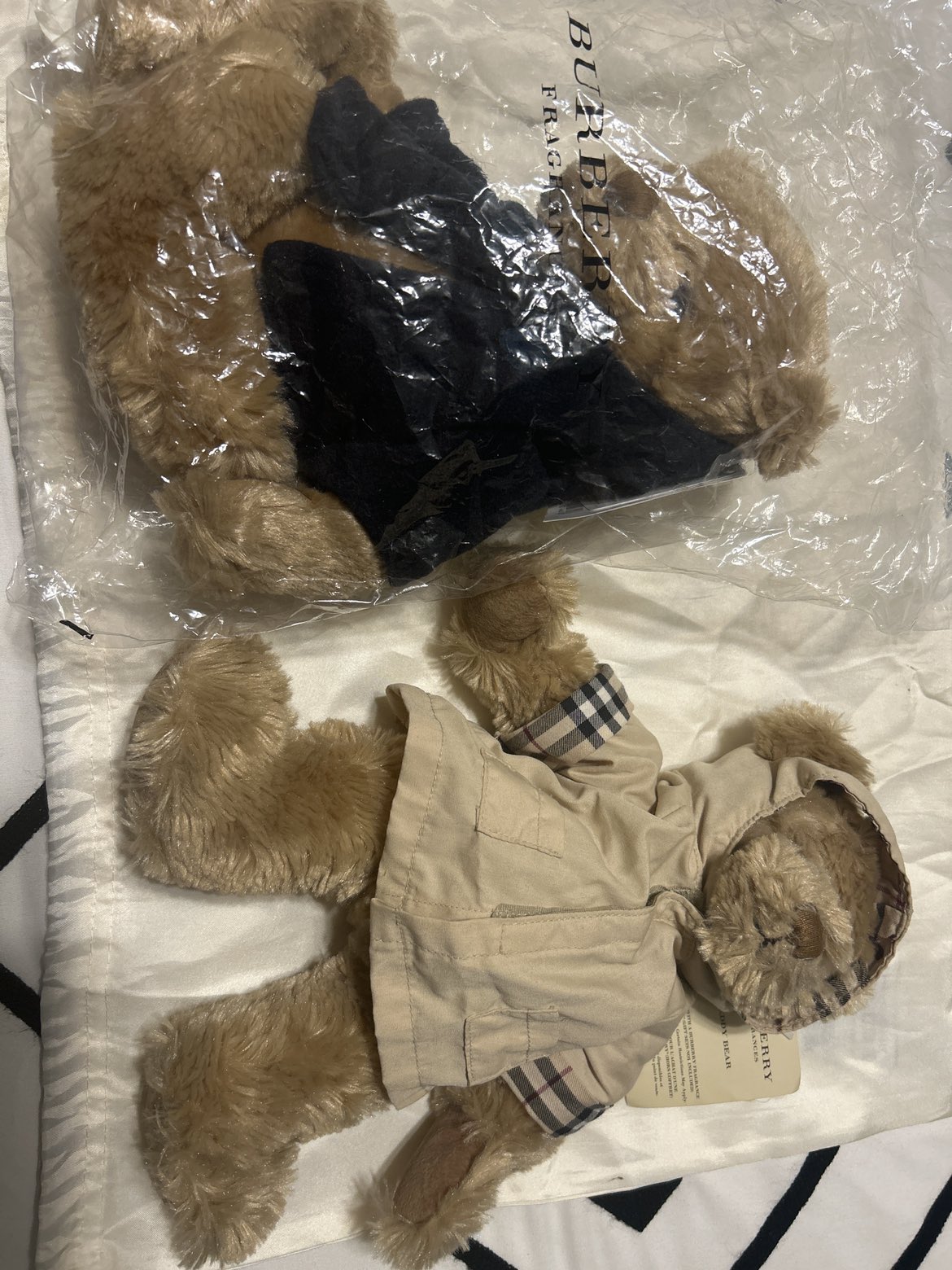 Burberry Teddy Bears One in trench coat one in hooded pea coat $20 each Pickup only