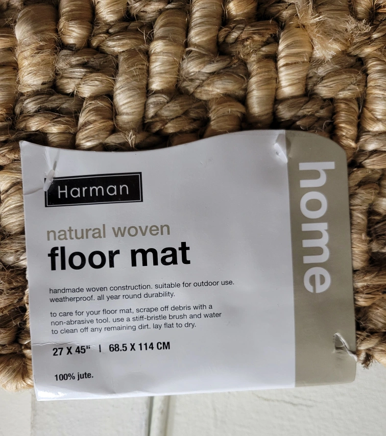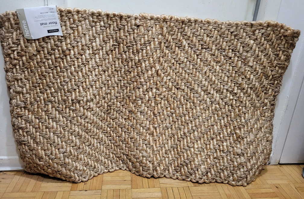 Natural Woven Floor Mat 100% jute Brand: Harman Condition: New with tag Dimensions: 27× 45" ** ALL SALES ARE FINAL. NO REFUND ACCEPTED. ** PICK UP INTERSECTION: Keele and Finch, North York