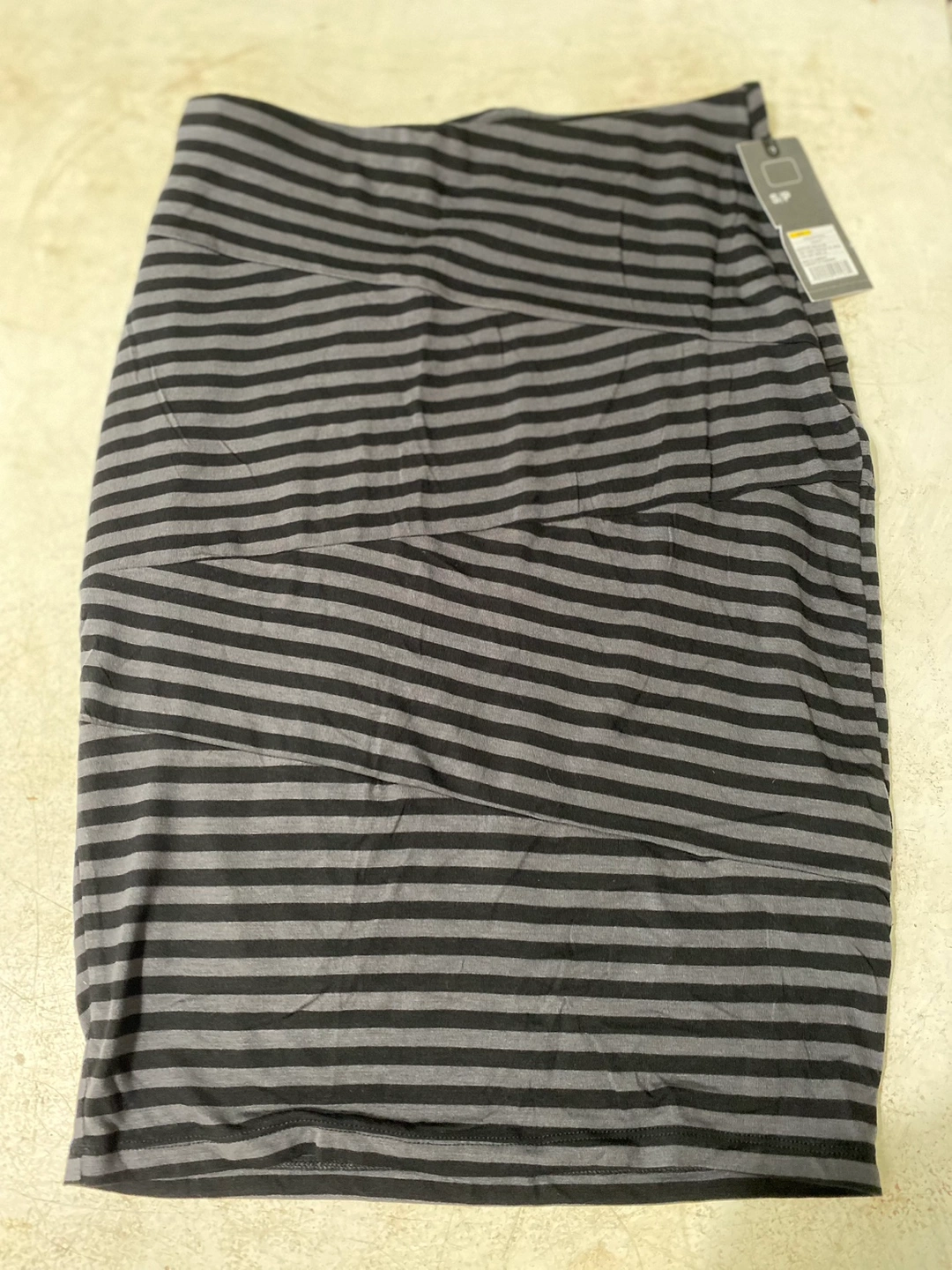 Women’s Stretchy Skirt: • Comfortable stretchy fit • Brand new. Never worn • Size small • Black and charcoal gray stripes • 96% rayon and 4% spandex • Mossimo brand • Has a built in lining • Originally paid $19.99 Care Instructions: • Machine wash cold • Gentle cycle with like colours • Tumble dry low • Low iron if needed Pick up ONLY in East End Toronto (Gerrard St East and Jones Ave area)