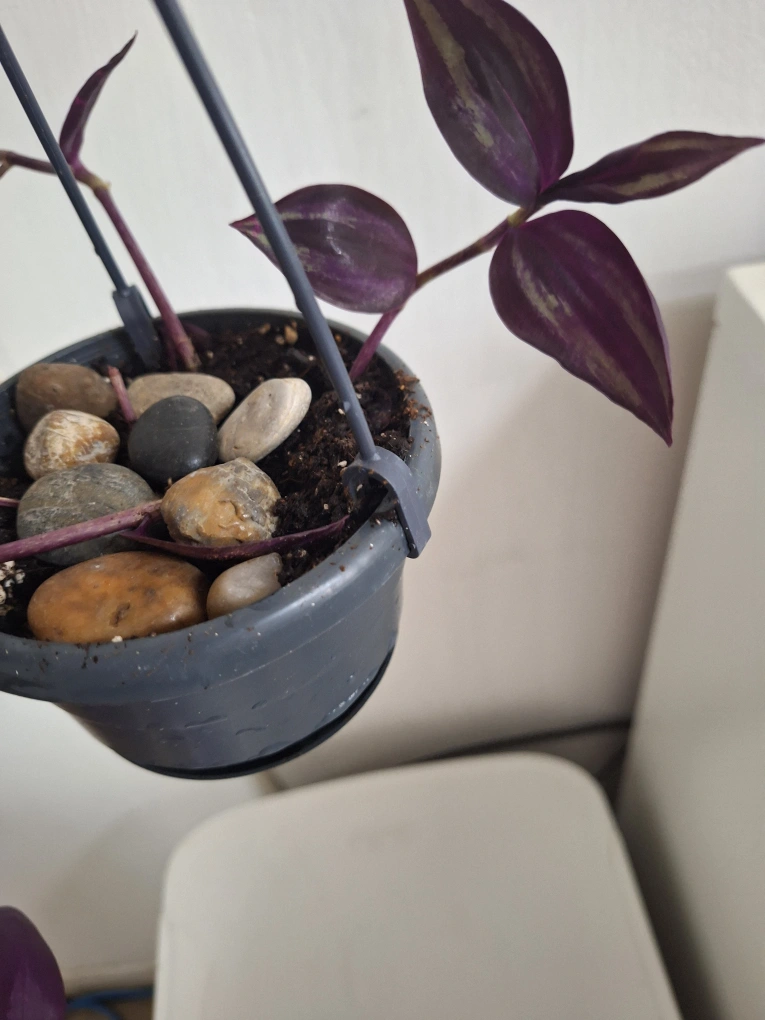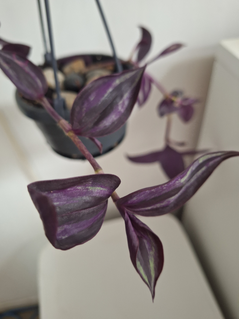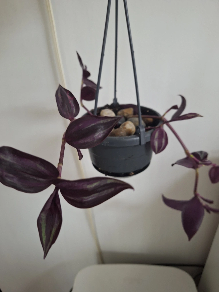 This is a small, hanging purple Wandering Jew plant. It has been grown indoors. longest stem 10 "