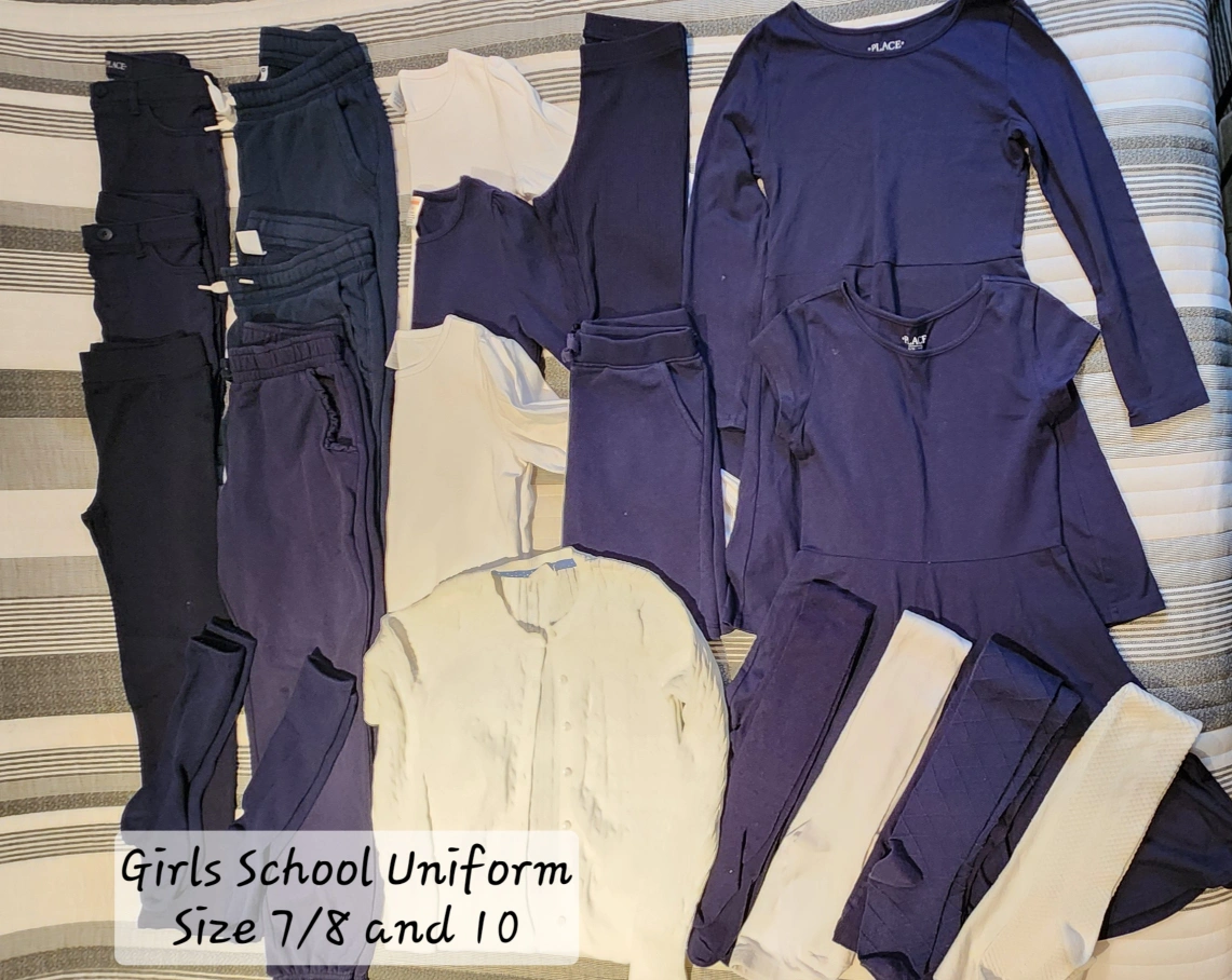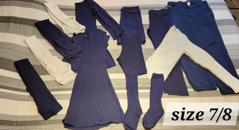 Includes pants, shorts, shirts, cartigan dresses, tights and socks. All items are in excellent used condition. The bundle contains sizes 7/8 and 10. Firm price