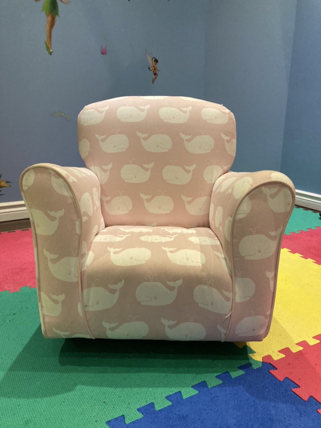Beautiful & solid toddler rocking chair. Pink with white whales, like new condition.