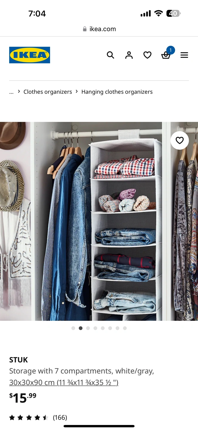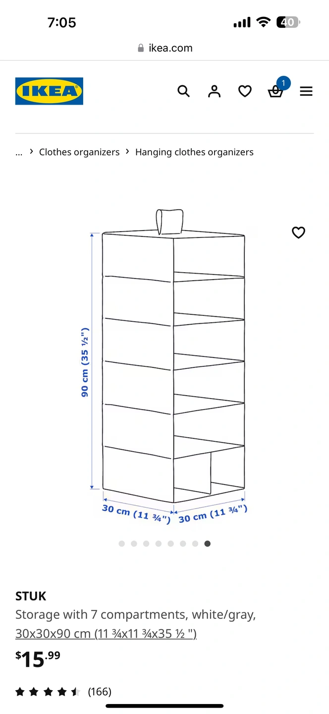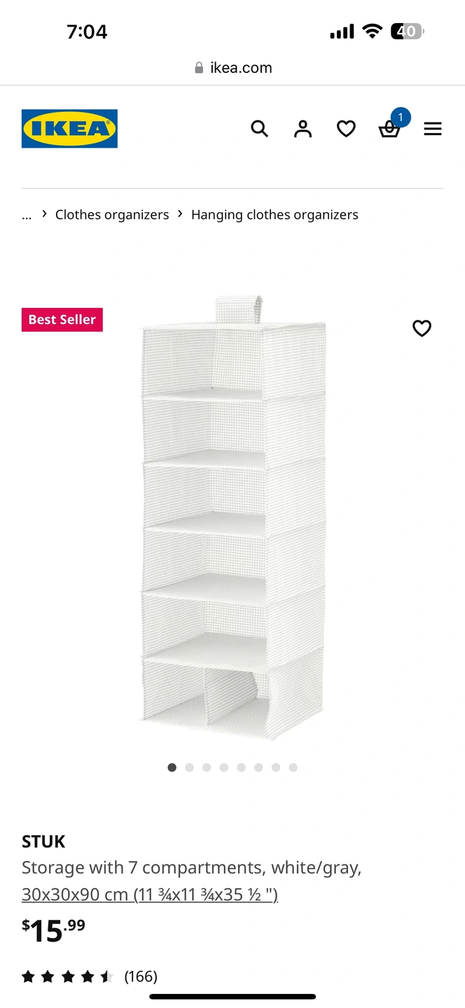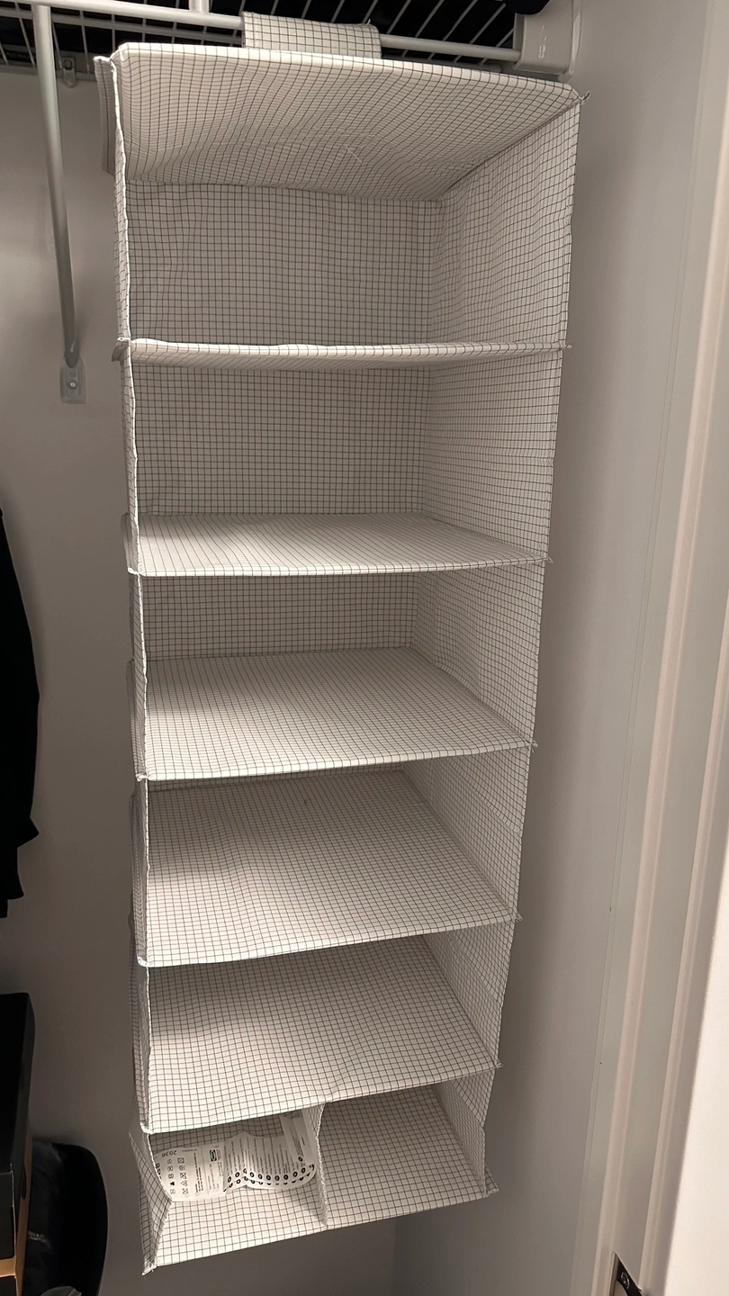 Lightly used IKEA STUK Storage with 7 compartments, white/gray. Hang this storage with a check pattern inside the wardrobe or on a freestanding clothes rack. Takes up little space to store as it folds flat. Measurements Width: 30 cm (11 ¾ ") Depth: 30 cm (11 ¾ ") Height: 90 cm (35 ½ ") Pick up near Front St and Sherbourne St. Cash only please.