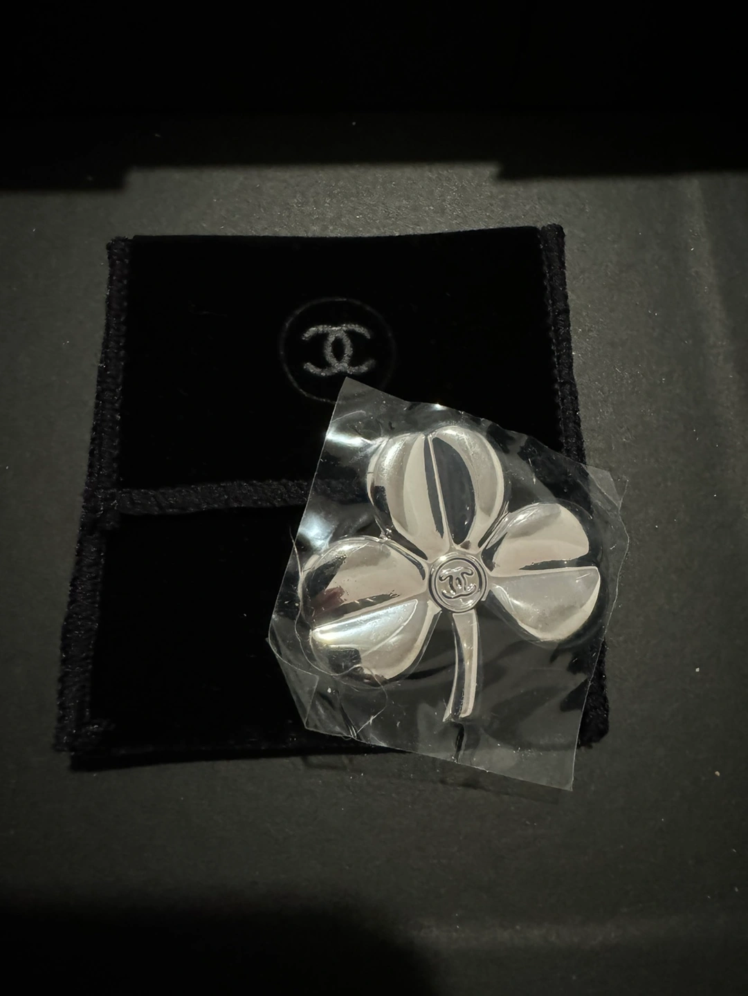 Silver Clover Authentic Chanel Beauty Brooch From Chanel Beauty not from Chanel Boutique Brand New protect film is still on Size is about 1.5 inch (4cm) Comes with dust bag