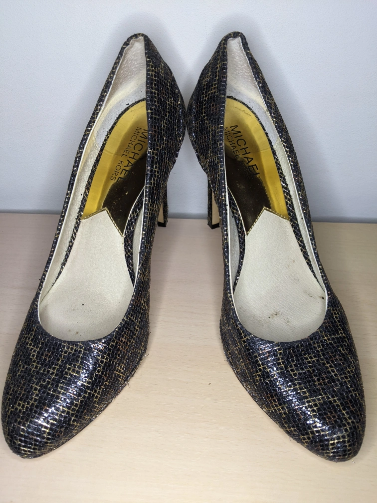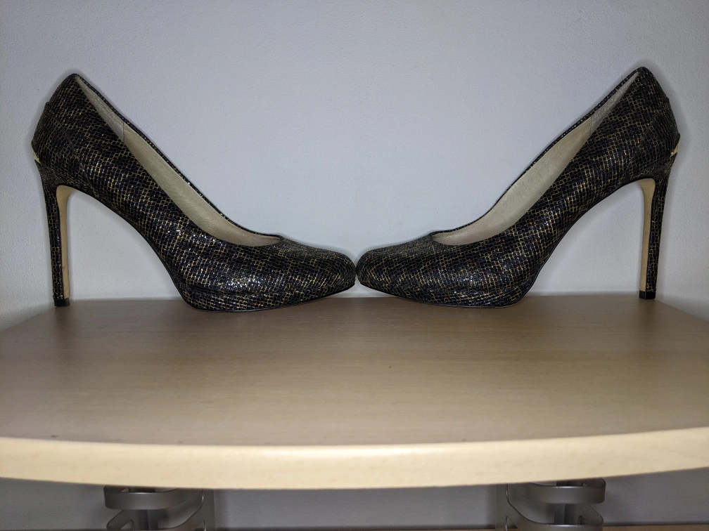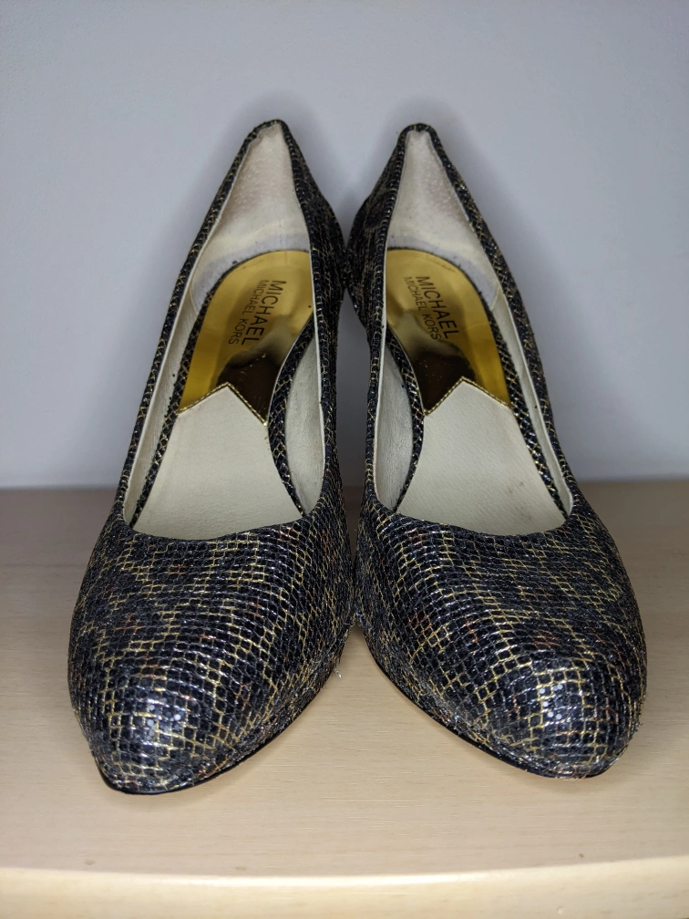 Michael Kors Metallic Snakeskin Peep Toe Platform Heels Pumps Size 8 Shoes