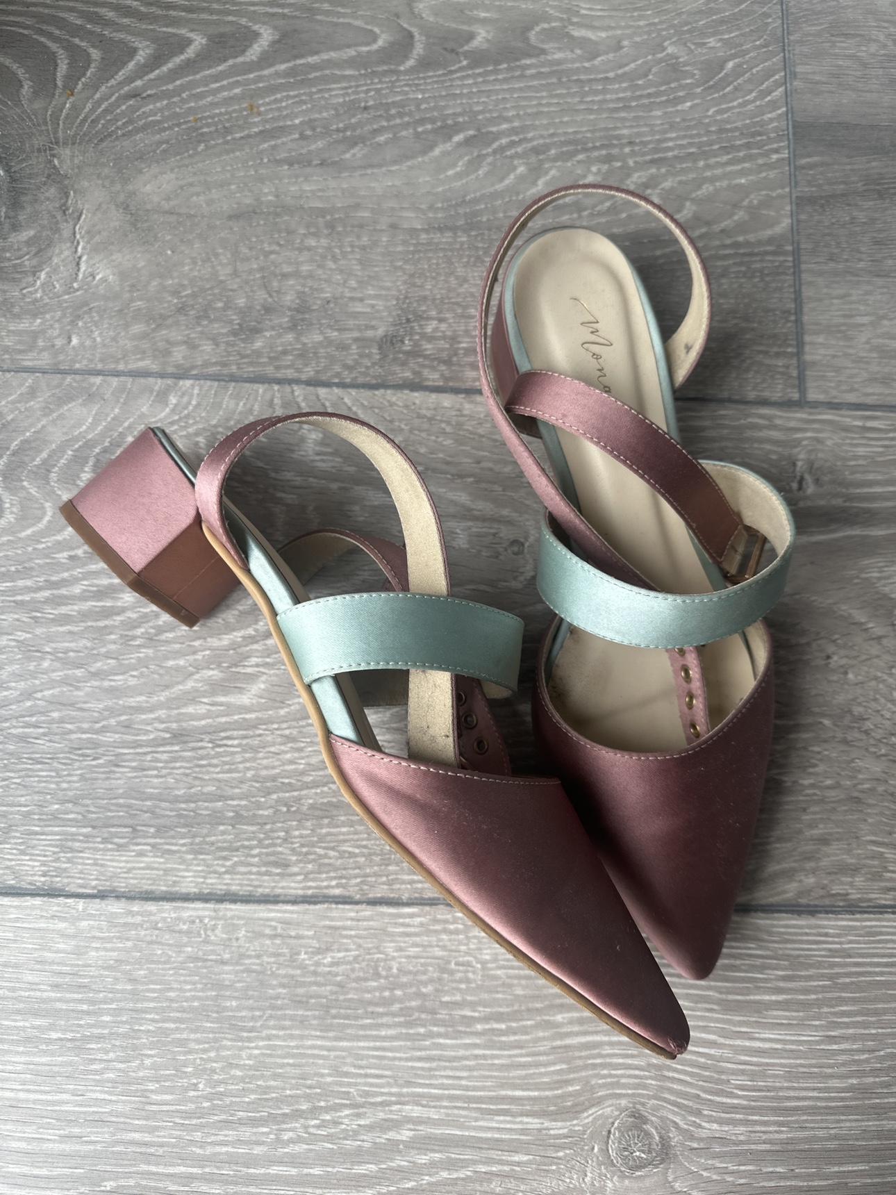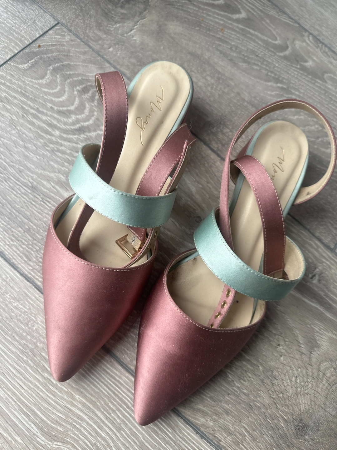 These are a pair of two-toned heels with a pink and aqua blue design. They are in excellent condition and were only worn a couple of times. Size: Us 5 women Or EURO 38