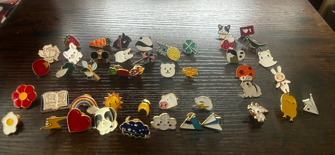 All pins are different size but all around 2cm~3cm They are all new never been used The right row is $3 the rest is $2 Buy 4 get one free