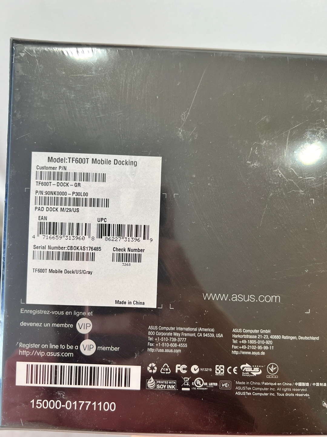 *Brand new and unopened. Product Features Docking latch Lets you easily and securely connect your Asus Transformer TF600T tablet to the docking station. 10" chiclet-style keyboard Enables comfortable typing. Function keys allow simple video and music playback. USB 2.0 port Provides easy connectivity. 36-pin connector port Offers simple charging. 22Wh battery Delivers up to 16 hours of power when connected to your tablet. Helpsrecharge your device's battery when docked to ensure it remains readyfor use. Slim-profile power adapter Lets you easily charge your device and another compatible USB-powered device simultaneously.