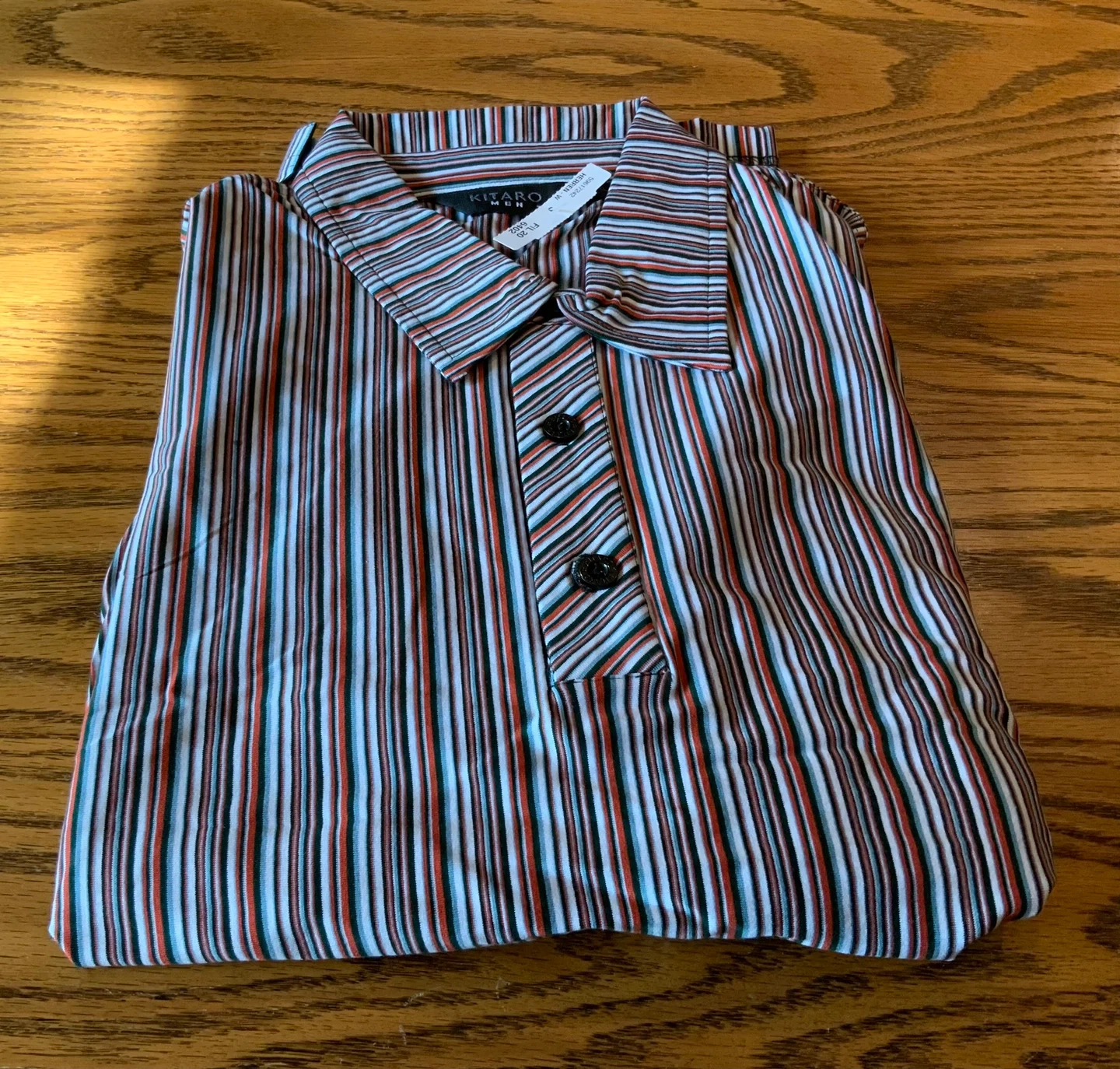 Men’s Kitaro 100% cotton short sleeve shirt. Extra large. Striped pattern (Herren] European made and style Not distributed in North America Size extra large Collar size 17“ x 17 1/2“ Chest 46” x 48”