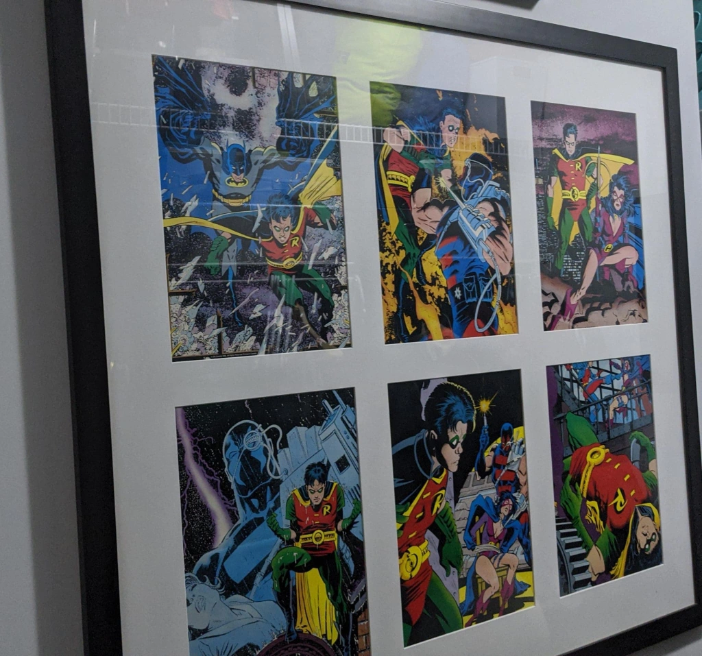 Robin III Cry of the Huntress Complete 6 Poster Set Framed (1992-1993) DC Comics Slight damage to bottom left corner of frame "Robin III: Cry of the Huntress was a six-issue bi-weekly limited series published from December of 1992 until March of 1993 and on the heels of the limited series Robin II. Like many comics of the early 1990s, this series was distributed in both a newsstand edition, and a polybagged direct market edition, which included special cover enhancements. The cover enhancement was described as a "moving cover". This series also helped to establish the background and supporting cast members that would appear in the ongoing Robin comic book series, as well as reintroducing the Huntress."